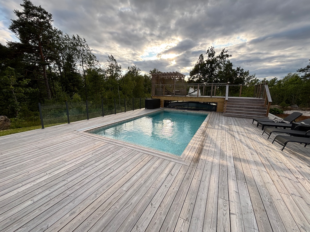 Bienvenido a nuestra casa de campo con diseño escandinavo en un hermoso entorno forestal en Sörmland. Decorado en madera con techos altos, ventanales grandes y ubicación tranquila por la reserva natural Jägarskogen. A pocos minutos a pie desde Sörmlandsleden y el lago Yngen. 6 camas, dos dormitorios y sofá cama. Amplias áreas sociales. Cocina totalmente equipada, perfecta para aquellos que quieren cocinar sus propias comidas,baño con lavadora. Patio con barbacoa. Naturaleza justo afuera de la puerta, pero a solo 30 minutos de Estocolmo en tren.