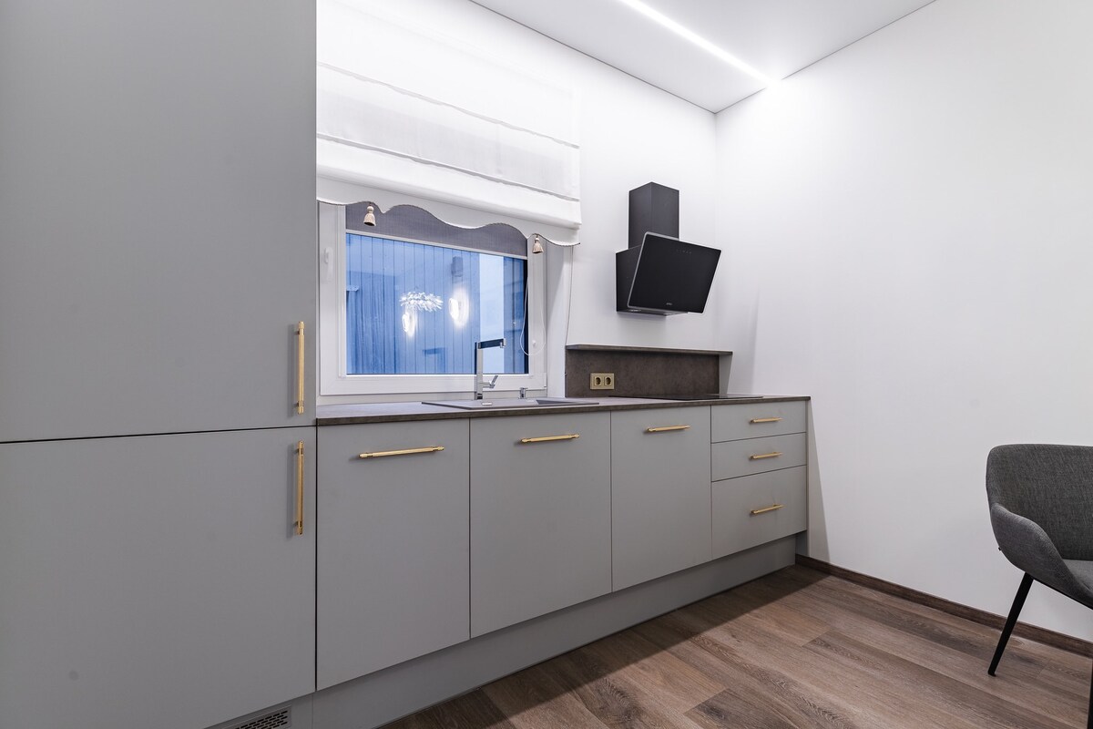 Escápate a este encantador estudio en el complejo Mano Jūra 2, a solo 10 minutos caminando desde el mar Báltico. El moderno espacio de 28 metros cuadrados incluye una terraza de 27 metros cuadrados, perfecta para parejas o familias pequeñas con una cama tamaño queen y un sofá cama. Por un cargo adicional, disfruta de un jacuzzi, jacuzzi, sauna, parrillas para barbacoa, horno de pizza, scooters eléctricos y bicicletas. Situado en el tranquilo barrio de Kunigiškiai, este estudio está cerca de la playa, los carriles para bicicletas y los bosques de pinos. Ideal para una escapada inolvidable junto al mar.