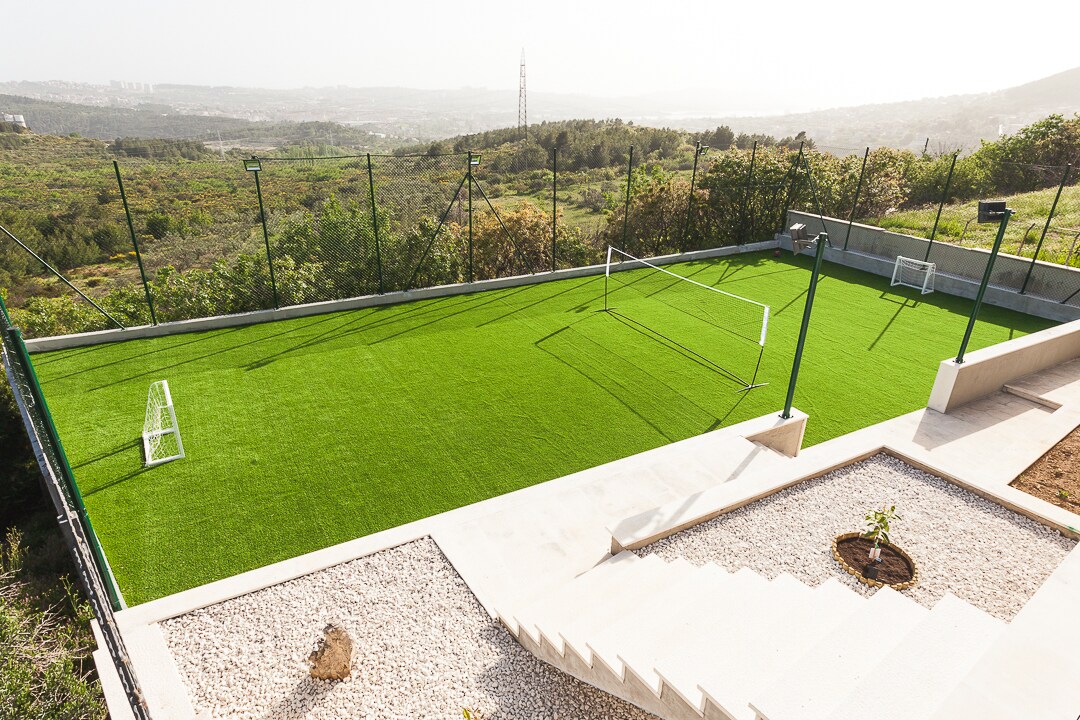 The villa is located on a hilltop overlooking Split, the islands and mountain area. It has 3 bedrooms and 3 bathrooms, 2 kitchens, 2 dining areas. The outdoor area features a big garden with many different spaces to enjoy such as the lounge area, dining area, playground area with a climbing set and trampoline, the pool, barbecue area... The house is spacious and allows privacy for individuals but also many areas to relax together inside or outside.