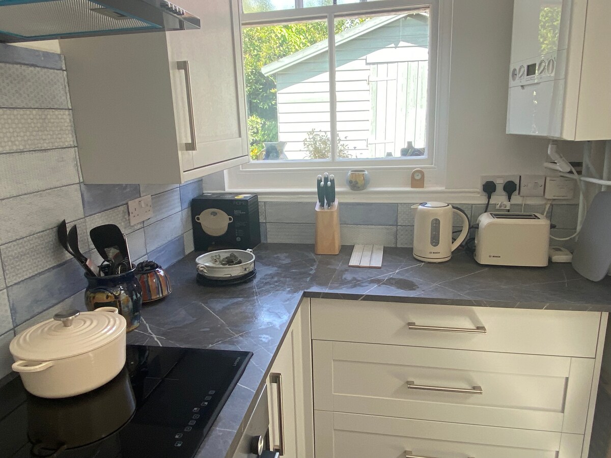Disfruta de la tranquilidad relajante de esta unidad privada. La casa cuenta con un diseño de concepto abierto, suelos de madera de tablones, muebles y decoración de buen gusto, tonos sutiles y una zona de patio con un comedor al aire libre que alberga algunos patos bastante amigables y pollos pequeños. El espacio es de aproximadamente 30 m2 y había sido renovado a un alto nivel en septiembre de 2017. Hay una cocina de buen tamaño, baño con una gran ducha, una cama doble y una sala de estar con espacio para colgar y estantes. Hay mucho espacio para guardar tu ropa mientras te quedas. Hay lavadora/secadora en el baño para lavar la ropa. El apartamento tiene su propia puerta principal privada y área de patio. También hay calefacción por suelo radiante en todas las áreas del piso. En la cocina, hay una placa de inducción, un horno de limpieza automático y un horno combinado de microondas incorporado para aquellos que quieren cocinar una comida fabulosa. La nevera/congelador está integrado y también hay un lavavajillas integrado. Hay hervidor, cafetera y tostadora. Si tienes suerte, puede haber una barra de pan casera fresca esperándote. Si los pollos o patos están siendo amables en verano, también puede haber algunos huevos frescos. En el baño, hay una gran ducha, con una ducha de efecto lluvia y chorros de agua. El agua se suaviza. Hay una lavadora/secadora en la esquina del baño y por encima de algunas toallas esponjosas grandes y frescas. Hay un gran espejo de pared a pared encima del lavabo grande con buena iluminación para maquillarte o afeitarte (toma de afeitado en la pared). Hay una cama doble con pequeños armarios junto a la cama a ambos lados. El colchón es de buena calidad y extremadamente cómodo. La ropa de cama está recién lavada y planchada. En la sala de estar, hay un sofá y un taburete con una televisión inteligente y, por supuesto, wifi rápido gratuito. Hay calefacción por suelo radiante en todas partes y hay un termostato en la habitación si deseas cambiar la temperatura a tu comodidad. Ten en cuenta que solo podemos aceptar huéspedes que tengan sus propios perfiles de Airbnb. Ten en cuenta el uso de otros perfiles de personas. Garantiza la seguridad de todos. Hay un amplio estacionamiento en la unidad delantera. Estaciona frente a las puertas del garaje, ya que está más cerca del apartamento. Vivimos en la casa principal que se adjunta al apartamento estudio. A menudo estamos cerca para ayudarte a responder cualquier pregunta. La propiedad se encuentra en una tranquila carretera residencial en el pueblo de Mayford entre Woking y Guildford. La estación de tren principal está a unos 8 minutos caminando, con conexiones con Guildford, Woking y London Waterloo. Mayford es un pequeño pueblo entre los centros urbanos de Woking y Guildford. El método de viaje más rápido y fácil es en auto. Hay una parada de autobús a solo un minuto a pie que te lleva a Woking o Guildford. Hay una estación de tren principal: Worplesdon, a unos 10 minutos a pie que te lleva a Londres Waterloo, Woking y Guildford. El estudio está adjunto a la casa principal, es posible que escuches un poco de ruido general de la casa principal. La propiedad se encuentra en una tranquila carretera residencial arbolada en el pueblo de Mayford entre Woking y Guildford. La estación de tren principal está a unos 8 minutos caminando, con conexiones con Guildford, Woking y London Waterloo. El transporte ideal sería tener tu propio auto para conducir por las áreas locales. Hay fabulosos pubs locales a poca distancia que sirven comida todo el día, un centro de jardín local y un bonito paseo hasta el río Wey, toma un picnic y disfruta de la vida silvestre.