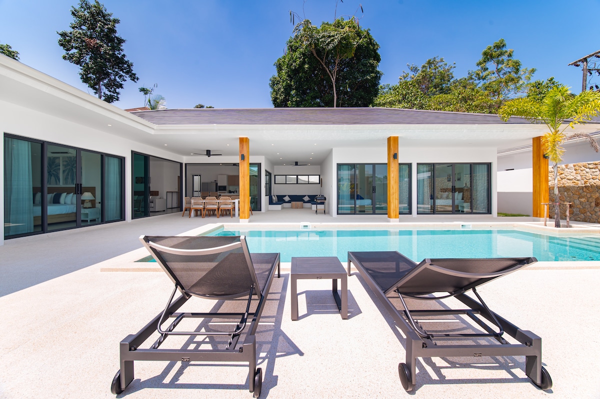 Rock & Stone es una nueva villa de lujo de 350 metros cuadrados, construida en un estilo contemporáneo con un diseño único y excepcional. La villa está situada en una gran roca, en una zona tranquila y silenciosa junto a la carretera a Baan Tai. La ubicación es perfecta para descubrir la isla. Ofrece una impresionante vista panorámica al mar y a la selva. Una combinación de materiales naturales y modernos hace de esta villa un lugar de paz y serenidad, integrándose armoniosamente en su entorno.