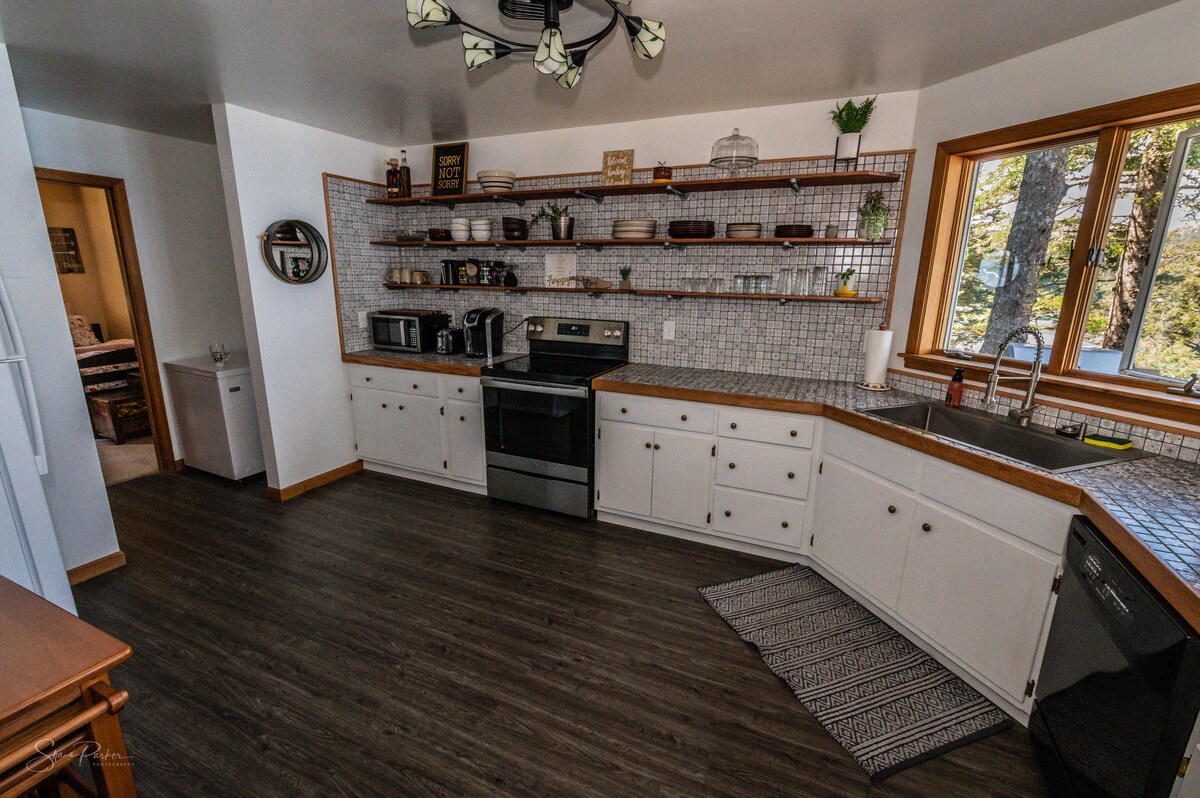 Si buscas unas vistas impresionantes al hermoso puerto de Kodiak, ¡este es tu lugar ideal! Arriba, una espaciosa sala de estar abuhardillada con techos abovedados tiene las mejores vistas. Relájate con un café por la mañana y, si tienes suerte, podrás ver una manada de orcas nadando. O pasa tiempo en la terraza en un día soleado de verano asando una comida casera. Ten en cuenta que debes estar preparado para subir y bajar escaleras para acceder a la casa.