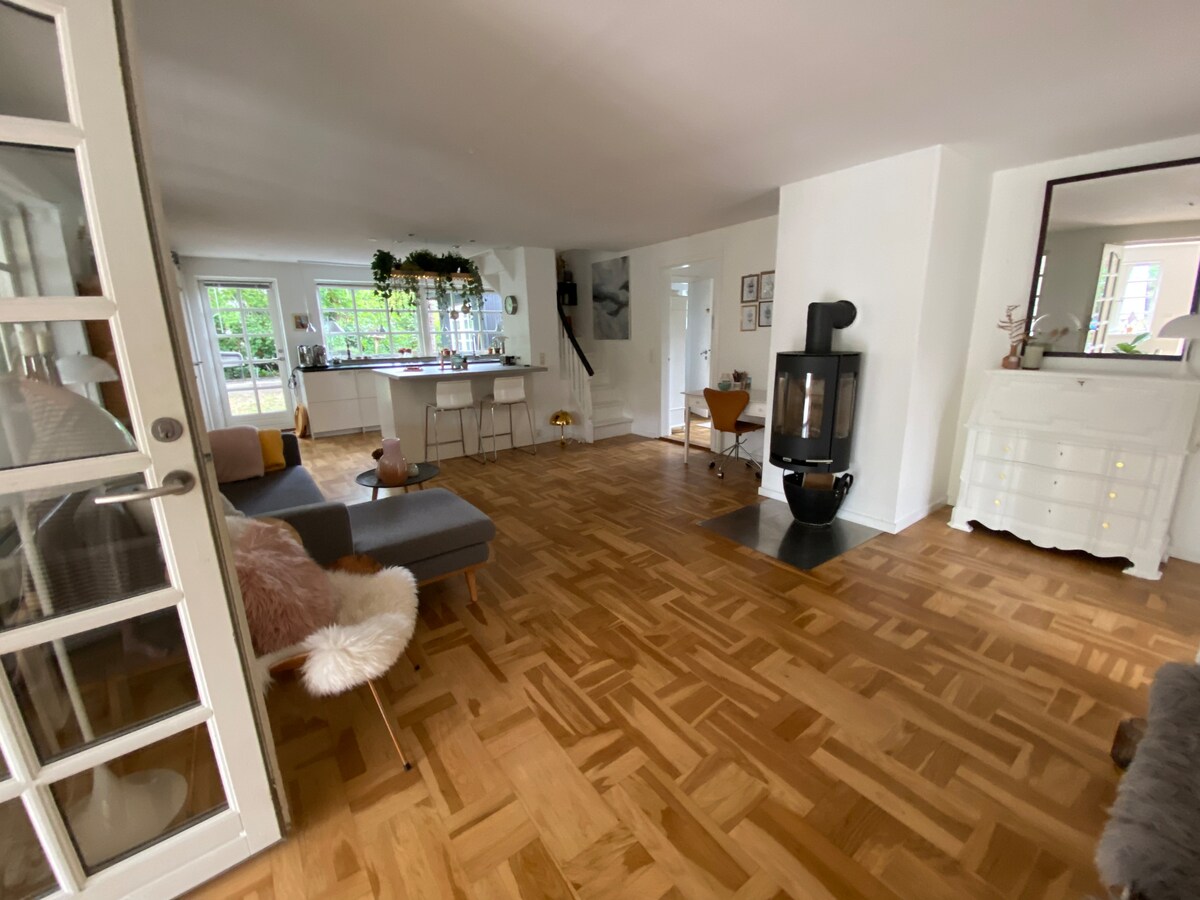 Encantadora villa de 155 m2 (+ sótano) cerca de Copenhague en una de las ciudades más históricas de Denmarks. A poca distancia a pie de trenes directos a Copenhague (cada 10 minutos) y en una zona atractiva que ofrece playa, tiendas y bosque.