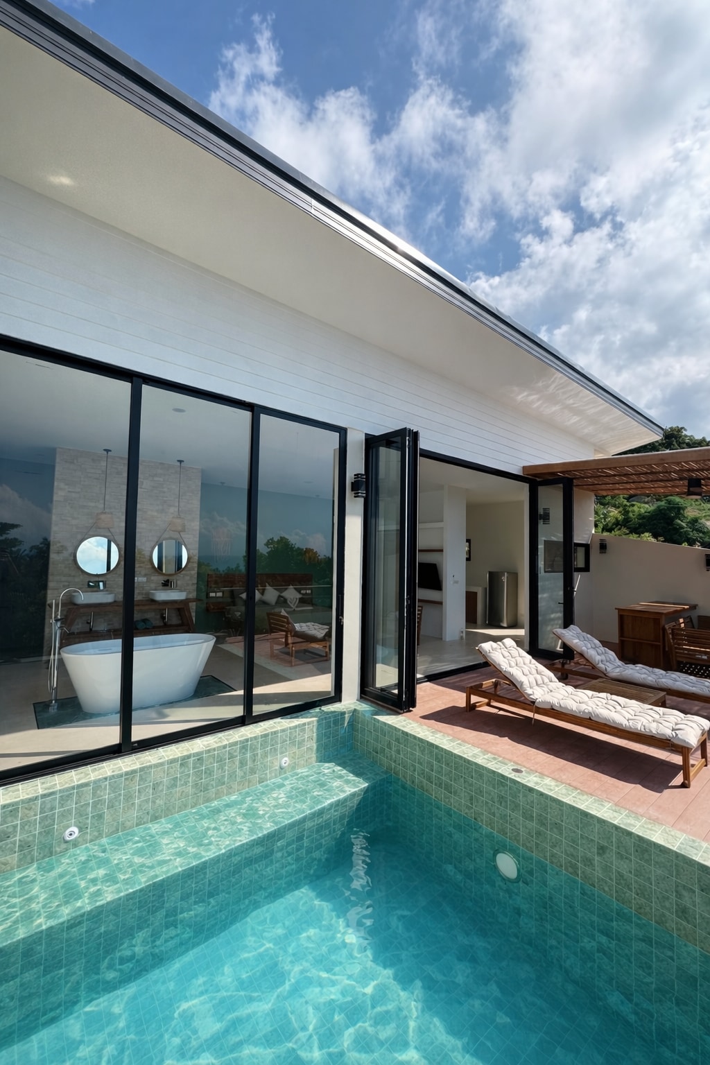 Swell Boutique Beachfront Villa es un elegante refugio de 2 dormitorios y 2 baños en Bang Por Beach. Disfruta de un verdadero acceso a la playa con impresionantes vistas al mar, interiores de diseño y comodidades para bebés. Camina a restaurantes, cafés y tiendas. Perfecto para familias, parejas o amigos que buscan una escapada lujosa frente a la playa en Koh Samui, ahora con una tarifa ESPECIAL de temporada baja.