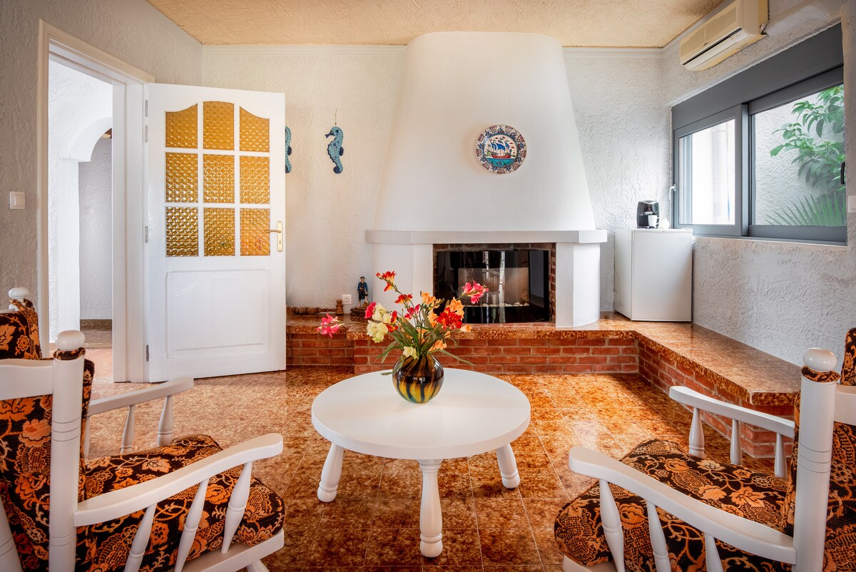 Si estás buscando unas excelentes vacaciones familiares económicas, permítenos alojarte en nuestra auténtica casa tradicional en el corazón del pueblo de Theologos, a 10 minutos del aeropuerto, a 5 km del valle de las mariposas y a solo 3 minutos de la playa en coche. Es una ubicación magnífica para aquellos que quieren unas vacaciones tranquilas, románticas o relajantes, pero también está a poca distancia de muchas instalaciones deportivas y muchos bares para aquellos que quieren un poco más de vida nocturna. Tiene capacidad para 4 personas.
