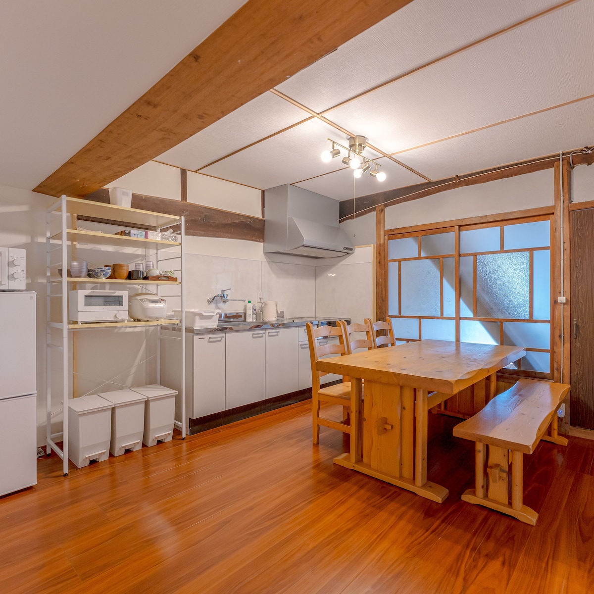 Casa histórica restaurada de más de 100 años de estilo tradicional japonés. Se ofrece un 20 % de descuento en estancias de varios días. Los 3 dormitorios tienen tatami con ropa de cama futón. 1 dormitorio en el primer piso con vistas al jardín que históricamente se había utilizado como lugar de espera para los invitados a la ceremonia del té. Hay una cocina/comedor y un baño completo con servicios occidentales y uso de una lavadora en el primer piso. El segundo piso ofrece 2 dormitorios contiguos separados por puertas de tela shoji y también incluye un aseo.