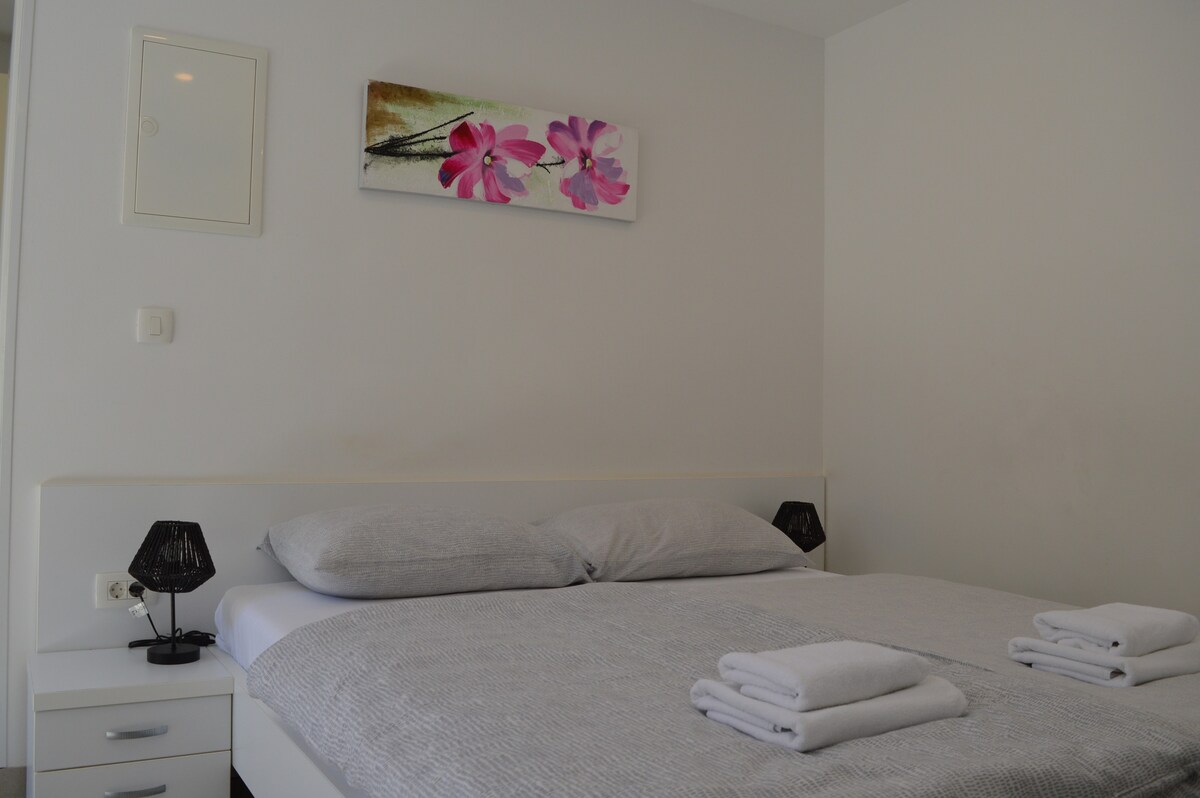 El apartamento está situado en la planta baja de la pequeña casa a menos de 50 metros del mar y la playa y a menos de 200 metros de los famosos bares Hulla Hulla y Falko. El centro de la ciudad está a 10 minutos. Consta de un amplio dormitorio, una amplia sala de estar, una cocina totalmente equipada, un aseo y un gran jardín con barbacoa en la parte delantera donde podrás relajarte y disfrutar.