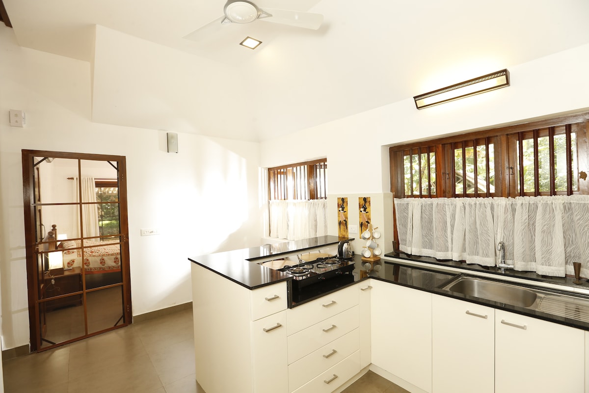 ¡Brindemos por el refugio ideal frente al lago Vembanad que es tuyo! Nuestra impresionante villa frente al mar, escondida a lo largo de la tranquila costa, ofrece lo máximo en comodidad y relajación. Nuestra escapada costera es el lugar perfecto, ya sea que quieras participar en una variedad de actividades al aire libre o simplemente relajarte con el sonido de las olas. Disfruta de una escapada romántica junto al mar o de una reunión con familiares y amigos en nuestra acogedora casa de campo junto al agua. *Por favor, trae una identificación original a tu llegada.