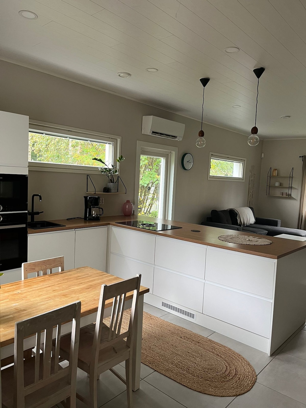 Apartamento en el segundo piso conectado a una nueva casa independiente. Entrada privada. Aire acondicionado. Al borde de un bosque en una nueva zona residencial en el norte de Oulu. Perfectamente adecuado para vacaciones y viajes de negocios. Una gran escala para aquellos que viajan al norte o al sur. Te permite disfrutar tanto de la naturaleza como de los servicios de la ciudad. ¡Te damos la bienvenida al tranquilo entorno ártico! Apartamento de 36 m2+baño de 6 m2. Cama doble/individual tamaño king de alta calidad, sofá cama y cama de repuesto. Minicocina. Cerradura de código en la puerta. Estacionamiento gratuito.