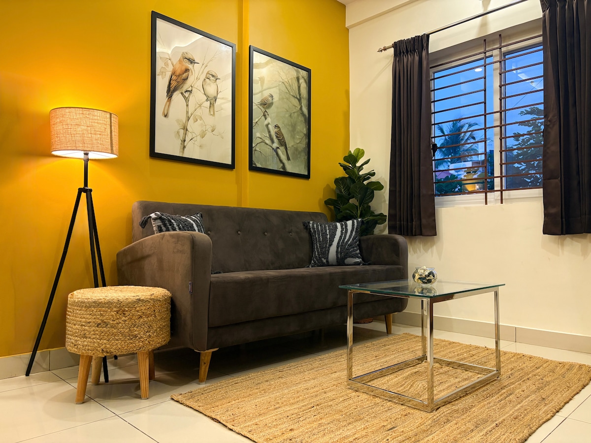 Spacious 600 square feet Designer 1BHK Suite with Private Balcony | High-Speed fibre optic Wi-Fi & Smart TV with streaming platforms, Work/Dining Desk, 24/7 power backup for uninterrupted work and comfort |Luxe King Bed & Orthopaedic Mattress ,wooden wardrobes for storage | fully equipped Kitchenette | Couch Bed in living room , Max.Occupancy 4 | Elevator access, professional housekeeping and access to paid laundry on site for long stays| Located in Central Bangalore | LGBTQIA++ Affirmative