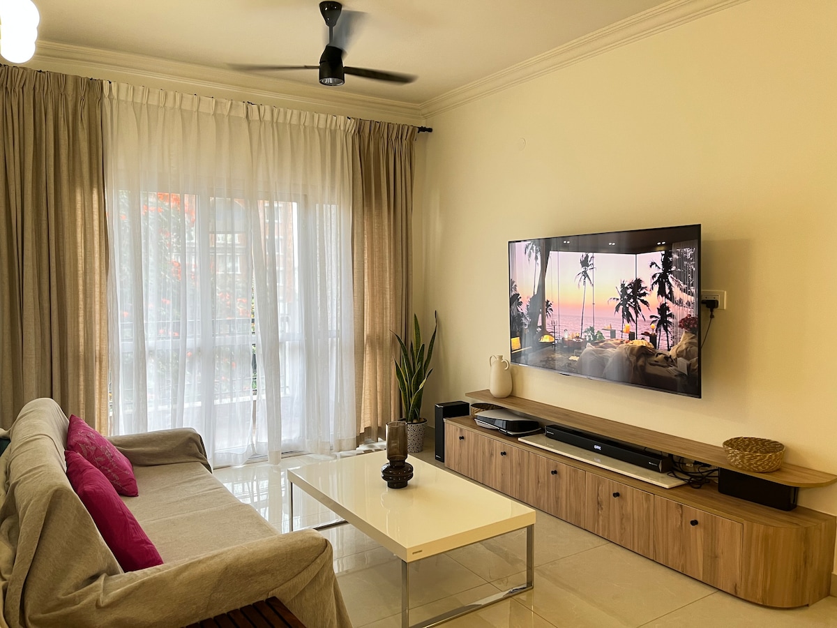 Welcome! A calm and tastefully done penthouse aesthetically setup with a private courtyard, perfect for a quiet, peaceful & relaxing stay for travelers and groups. Spend some tranquil time in your private king-sized bedroom with attached bathrooms and an additional double bed-sofa & powder room. Whip a quick meal in the self-contained kitchen or mix a drink at the bar unit. Spend time gazing at the terrace patio. Meditate, read a book in the courtyard, and enjoy a movie night in the living room.