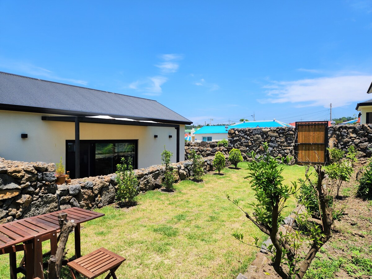 Aewoldakbang es una casa privada ubicada en un tranquilo pueblo de montaña. Es una hermosa casa de campo con un jardín rodeado de campos de tangerinas. A unos 30 minutos del aeropuerto. A 5 minutos de 'Hanaro Mart' y 'Daiso', que son como E-Mart en Jeju. Hay tiendas y hermosas cafeterías a 10 minutos a pie. La escuela primaria Deoreok, famosa por ser una escuela primaria bonita, y el pueblo de flores de Haga están a 10 minutos a pie. Hermosas puestas de sol y paseos marítimos famosos Playa Handam, Calle de Café Aewol, Puerto Aewol, Bosque Nandeorim de Napeup, Playa Gonae están ubicados cerca. El ático de Aewol es tranquilo. Los huéspedes con buen oído pueden sentarse en la ventana del ático y escuchar la luz de las estrellas y los susurros de las olas. Por la mañana, el canto de los pájaros y el aroma de las flores de tangerina despertarán a los huéspedes. Podrás disfrutar de un paseo por los campos de tangerinas y el hermoso pueblo rural de Olle mientras ves el amanecer sobre el monte Halla. Aewoldarakbang es una cueva solo para los huéspedes. Es un búnker solo para usted, donde nada puede interferir.