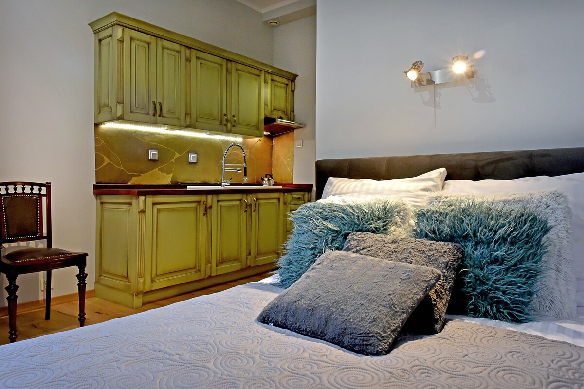 Los apartamentos que se encuentran en el edificio están decorados en un estilo que armoniza con la historia del edificio. Cada uno de ellos hace referencia al ambiente clásico del lugar a través de elementos interiores cuidadosamente seleccionados: desde muebles elegantes, suelos de madera, hasta elegantes detalles de acabado. Los interiores son luminosos, espaciosos y están equipados con todas las comodidades modernas para garantizar una estancia cómoda a los huéspedes.