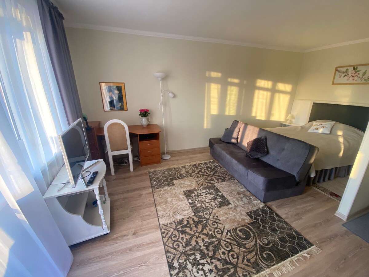 Acogedor apartamento/estudio, para una persona de negocios o una pareja con un niño, el apartamento está equipado con todo lo necesario para la relajación y comodidad de tres personas. Toda la infraestructura necesaria está a pocos pasos.