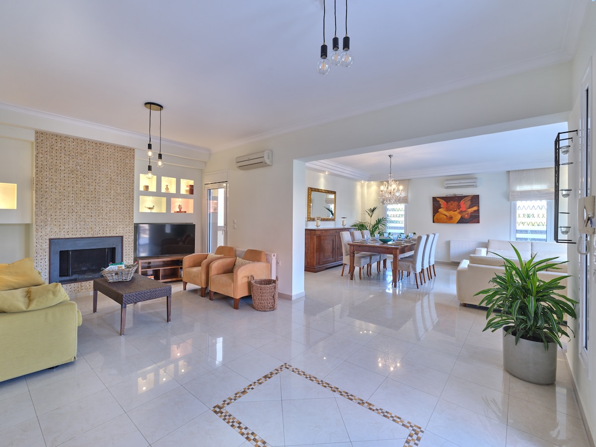 Villa de lujo con piscina de nueva construcción (totalmente climatizada y con ventiladores de techo) Una impresionante villa de lujo de 150 metros cuadrados ubicada en un exuberante jardín verde en la pintoresca ciudad de Ialyssos, a solo 7 km del aeropuerto y de la ciudad de Rodas. A solo 5 minutos a pie se encuentra la hermosa playa de Ialyssos, donde podrás explorar excelentes bares, restaurantes, servicios de alquiler de coches, supermercados, una estación de taxis y mucho más. Relájate junto a nuestra piscina, ya sea tomando el sol por la mañana o disfrutando de una copa por la noche.