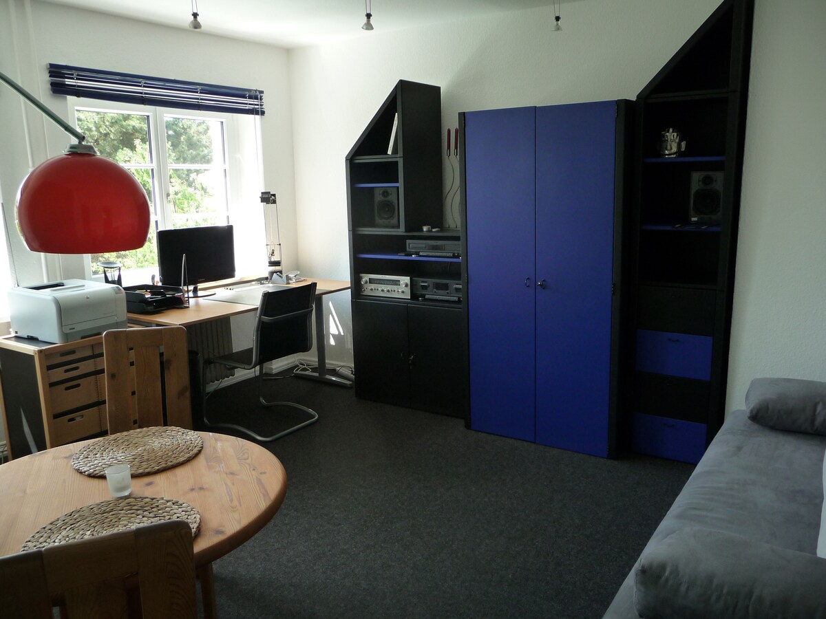 We just rebuilt the former youth room from my son. It's all brand new. With a modern bathroom and kitchenette and a own entrance and bell. Very quiet, perfect to relax. Located in the backyard, 4th floor, in the garden house. No elevator