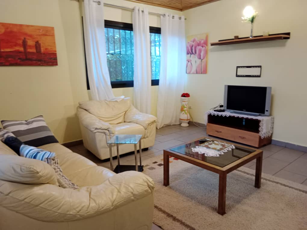 residencia de 6 apartamentos cerca de la playa y la ciudad de kribi en cameroo. la residencia tiene una piscina privada, los 6 apartamentos cada uno tiene una sala de estar, una cocina equipada, 2 baños, 2 dormitorios con cama doble. El precio que se muestra para la noche es el de un apartamento de 02 habitaciones.