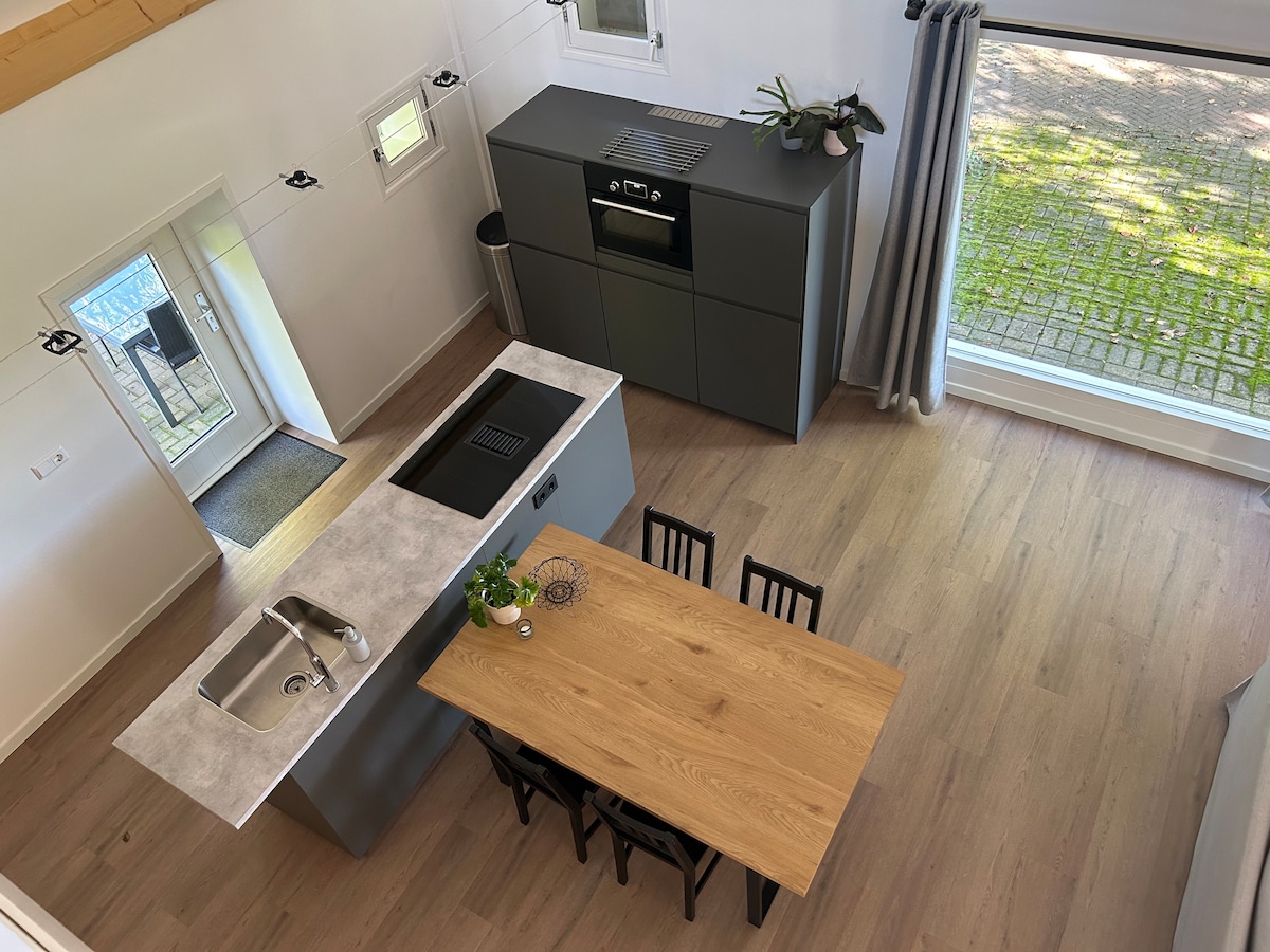 Este vagón / minicasa Pipo tiene; calefacción central (por suelo), aire acondicionado (split), aire acondicionado, lavavajillas, estufa Boretti, cafetera, terraza grande con barbacoa Kamado, muelle de caja ajustable eléctricamente 140 x 210 cm, TV interactiva, Netflix, wifi, ropa de cama y baño y productos Rituals. 1 o 2 bicicletas eléctricas para 15,-/ día 1 o 2 electrobicicletas para 30,- / día descansando en medio de la vegetación entre Herikerberg y Borkeld/Montaña Frisiana. Senderismo / ciclismo; ruta en bicicleta de montaña a 100 metros.