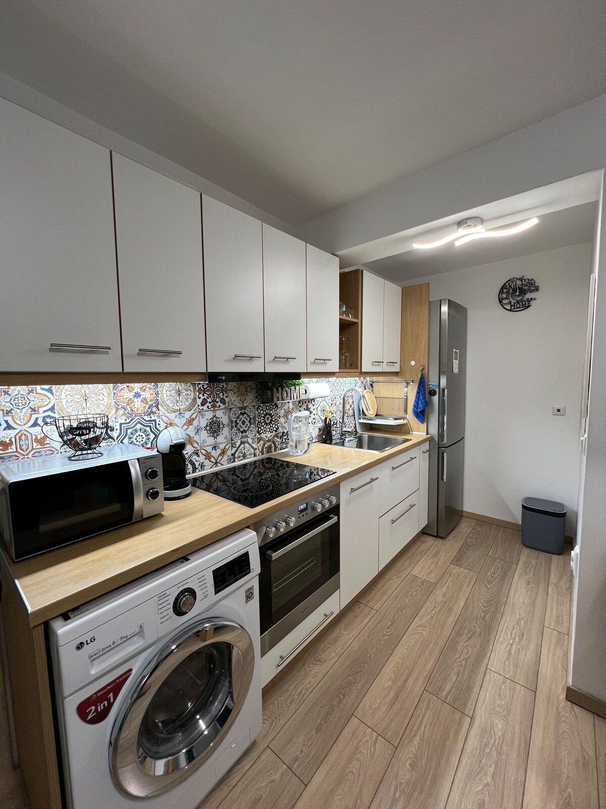 Disfruta de una experiencia con estilo en este lugar céntrico. El apartamento ofrece a los huéspedes: 1. Dormitorio grande con espacio de almacenamiento y TV. 2. Cocina totalmente equipada con todos los electrodomésticos necesarios. 3. Mesa de comedor con 4 sillas. 4. Zona de relax con TV. 5. Internet de alta velocidad. 6. Aire acondicionado en cada habitación. 7. Lavandería con lavadora y secadora. 8. Baño moderno. Forma de alojamiento: El check-in lo realiza personalmente el anfitrión.