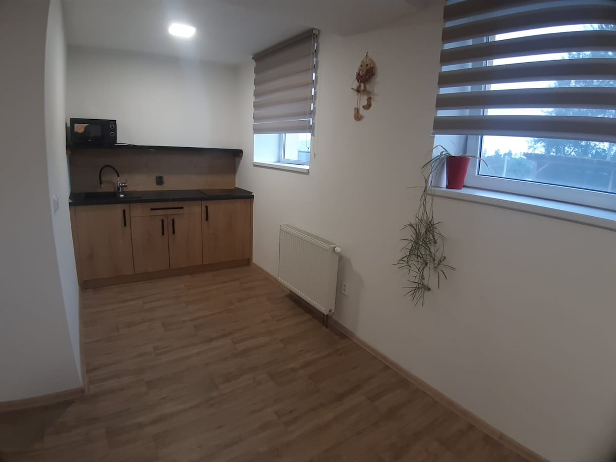 Tenemos departamentos con una cama doble para ti en Kašov Stays. En la cocina hay nevera, encimera y microondas. Puedes sentarte en una terraza con vistas a las Montañas Gigantes. En las inmediaciones, por ejemplo, el zoológico de Dvur Králové ZOO n/L, el Hospital Kuks y el Belén de Braun, el bosque de la presa del Reino,… Te recomendamos que visites con mascotas que sean manejables. Solo bajo tu propia responsabilidad. Toda la granja tiene 7 apartamentos. Elegiré el apartamento de acuerdo con la ocupación y otros criterios para que tengas comodidad. Nos vemos pronto, Míša