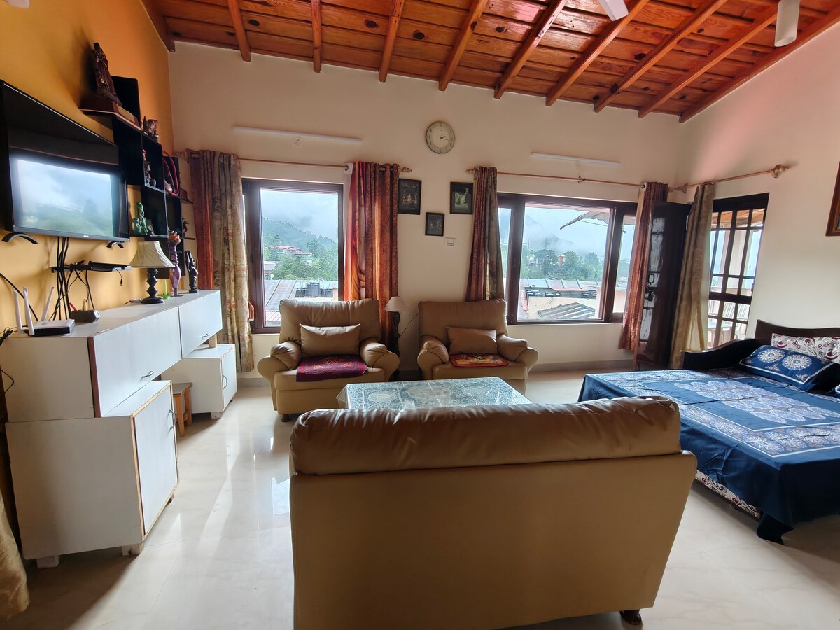 Wake up to crisp mountain air and sweeping hill views in this enchanting 1-BHK apartment. Sunlit living space, kitchenette, dining space, plush bedding, and a private balcony create a serene sanctuary to relax, reflect, and soak in nature. Thoughtful touches, cozy corners, and lush surroundings turn every moment into a sensory escape- perfect for couples, solo travelers, or small families seeking a peaceful, unforgettable mountain retreat.