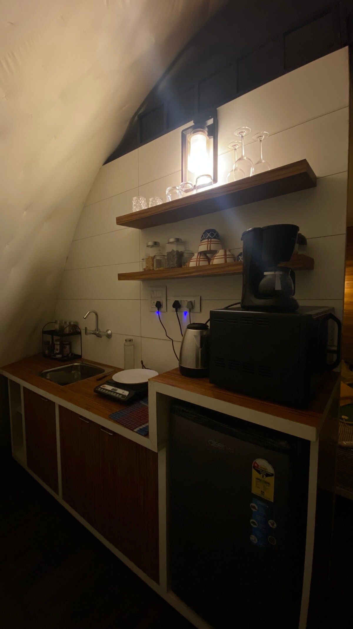 ¡Mejora tu experiencia de acampada con una estancia en nuestra lujosa cúpula de glamping cerca del lago Naukuchiatal! Rodeada por las impresionantes montañas del Himalaya, nuestra cúpula única ofrece una mezcla única de lujo y aventura. Despierta con los sonidos de la naturaleza y pasa tus días explorando el impresionante paisaje del Himalaya. Haz una caminata por los senderos circundantes, ve a navegar por el lago o simplemente relájate y disfruta de los serenos alrededores.
