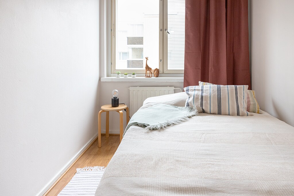 Sencillo en este lugar céntrico. El apartamento tiene una plaza de estacionamiento gratuito y aire acondicionado en verano. El apartamento renovado se encuentra a una cuadra de la plaza, a solo 350 metros a pie de la estación de tren. Desde la ventana se puede ver la torre de la catedral, ¡y la vida de restaurantes de Kuopio te espera a solo dos manzanas! El apartamento tiene una cama doble de 160 cm de ancho y, si es necesario, el sofá también puede alojar a una persona adicional (NOTA: área para dormir limitada; 180 cm×85 cm).