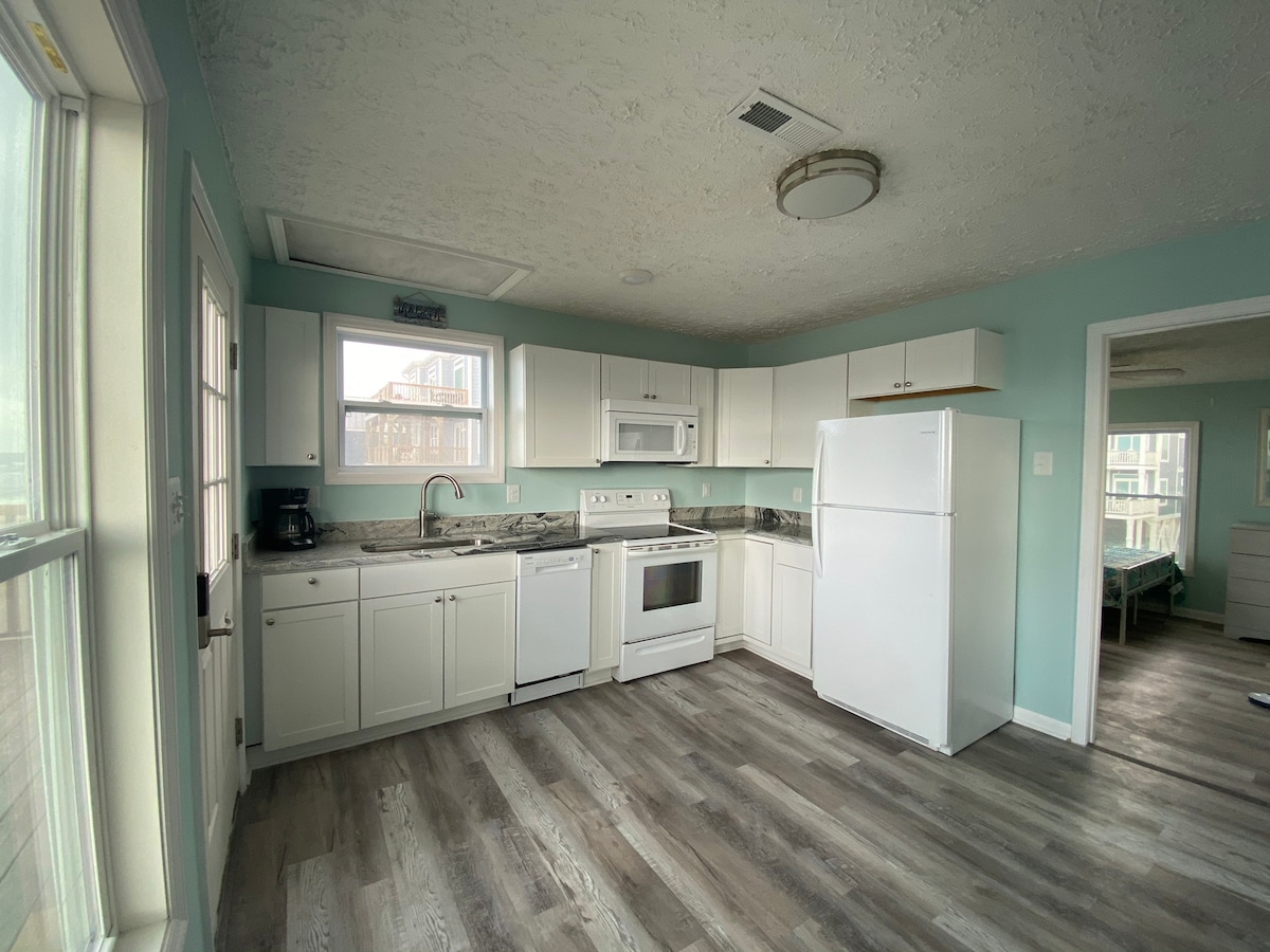 Disfruta de una escapada familiar perfecta frente al mar en West Beach, Oak Island. Esta unidad de segundo nivel de nuestra casa de playa tiene entrada independiente, dos dormitorios, un baño y capacidad para seis personas. La cocina está totalmente equipada con ollas, sartenes, utensilios, nevera de tamaño completo, microondas, cocina/horno y lavavajillas. Disfruta de amaneceres y atardeceres en la enorme terraza mientras observas las olas y los delfines ocasionales. Si tus fechas no están disponibles, consulta la disponibilidad de nuestra unidad de primer nivel en www.airbnb.com/h/oki1