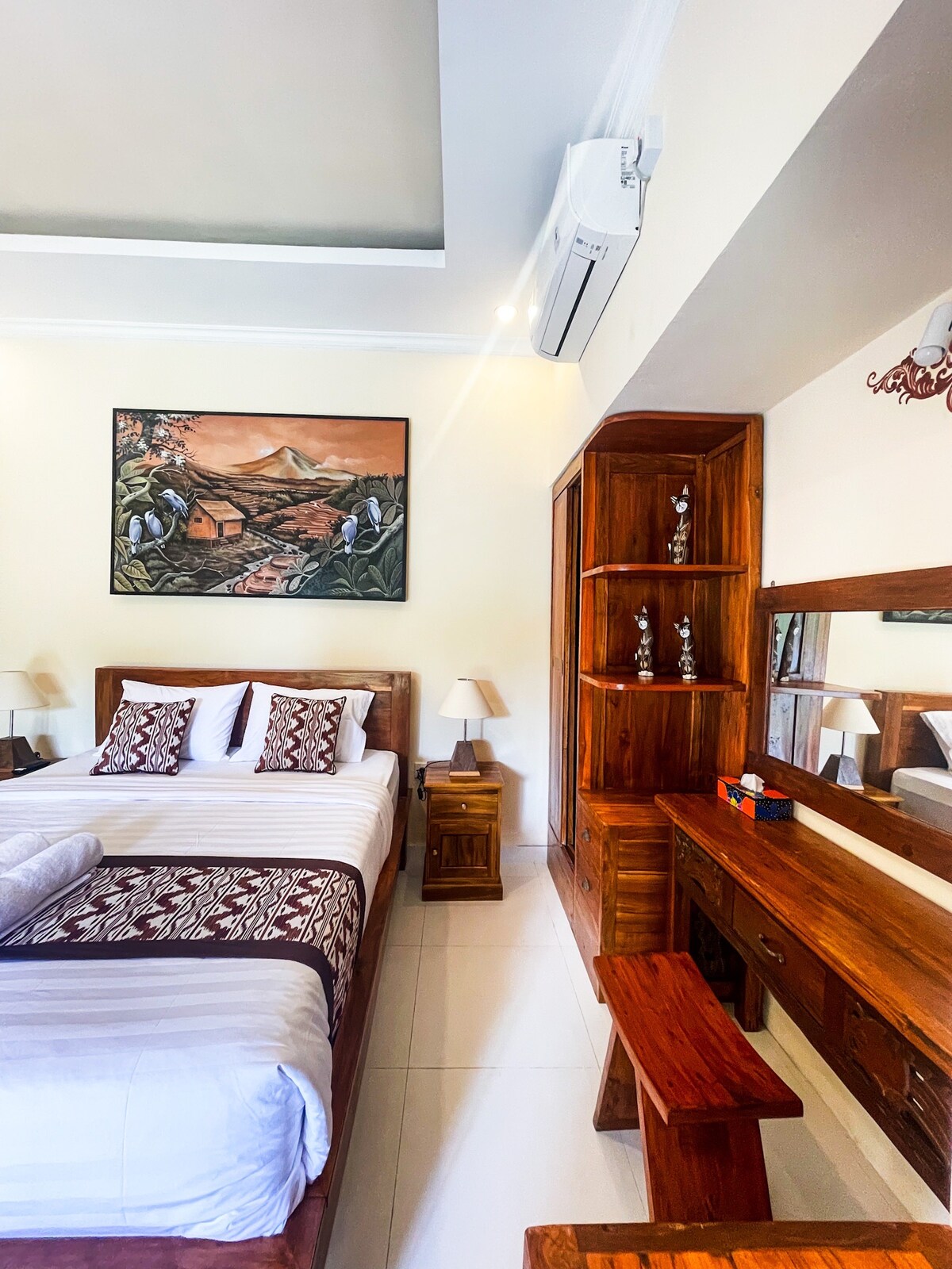 Situada en el corazón de Legian, esta acogedora casa de campo de 3 dormitorios se encuentra entre jardines y un estanque. ¡No te pierdas esta rara oportunidad! * Traslado gratuito desde el aeropuerto en el momento del check-in para estadías de 7 noches o más.* ► Las mejoras recientes incluyen: - Nuevas sillas al aire libre y bolsas de frijoles. - Televisión inteligente LG de 43 pulgadas - Unidad de aire acondicionado en la sala de estar. - Nueva mesa de comedor. - Películas de protección solar en todas las ventanas para reducir el calor y mejorar la privacidad.