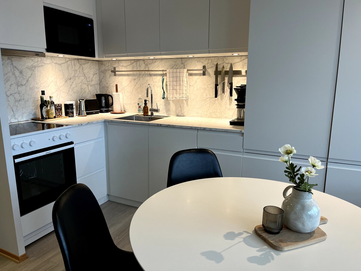 Denne flotte og sentrale leiligheten ligger i 2 etasje og er 43 m2. El apartamento tiene un pasillo, dormitorio, baño y sala de estar con cocina americana. También hay un balcón privado. La zona de Vervet es un distrito recientemente desarrollado en Tromsø, con restaurantes y cafeterías justo al lado. El centro de la ciudad está a solo 5 minutos a pie de los apartamentos, al igual que la catedral Ártica al otro lado del puente. El edificio de apartamentos es moderno y está situado junto al puerto.