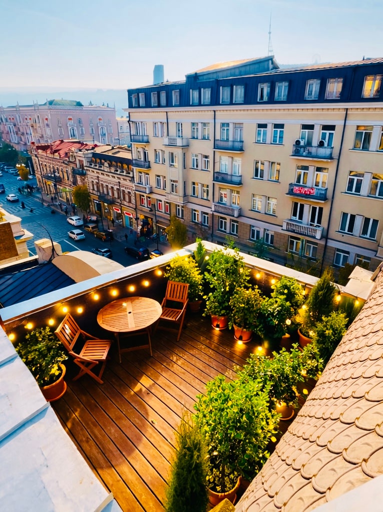 Casa de los ángeles. Jardín y vistas al casco antiguo de Tiflis