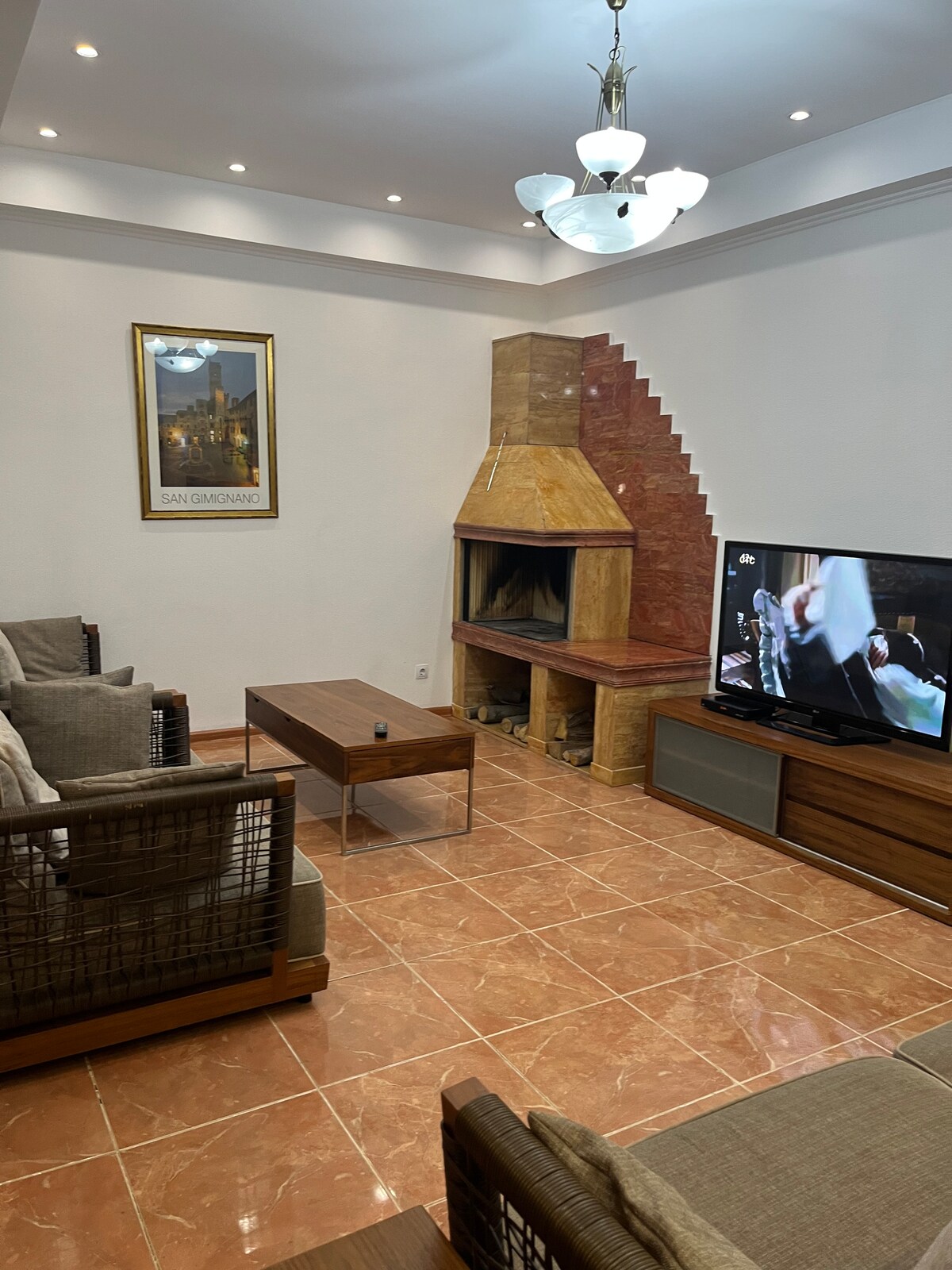 Tres plantas (incluida la planta baja) 1er piso - 56 metros cuadrados, muebles de cocina con un juego de vajilla para 12 personas, mesa+ 6 sillas, nevera, estufa, horno microondas, electrickettle Sofá (corredizo), mesa,TV, chimenea (fuego bajo petición*) Baño La casa está diseñada para 14 personas, incluidos niños.