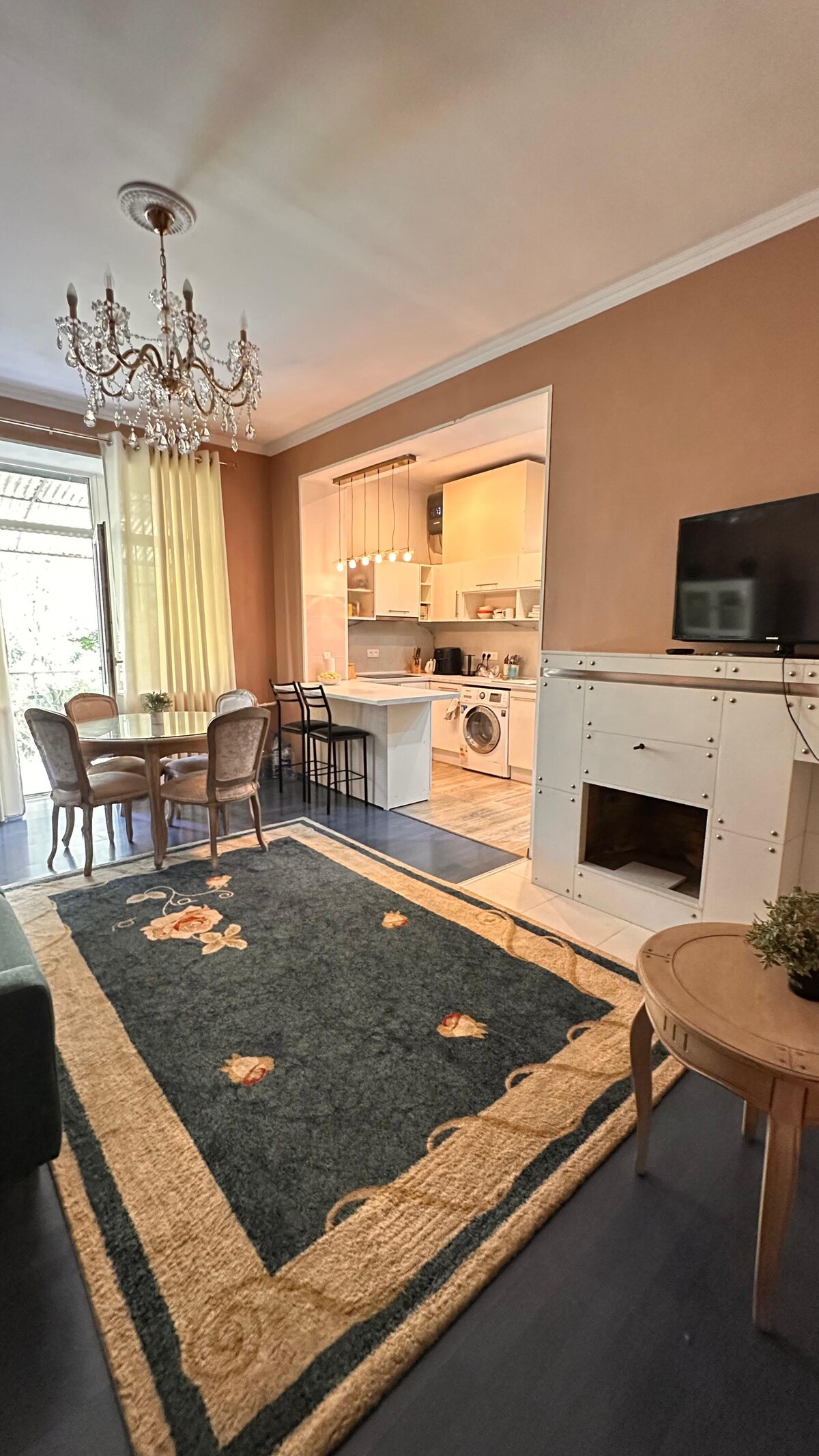 Amplio apartamento de 1 cama construido en la época de Stalin, pero modernizado y reformado al gusto occidental. Totalmente amueblado, calefacción central, aire acondicionado, amplio balcón, gran cocina/comedor/sala de estar de planta abierta, dormitorio doble, baño con bañera y ducha. Ubicación céntrica, pero en un vecindario tranquilo. El edificio está cerrado con solo 3 pisos en la cuadra.