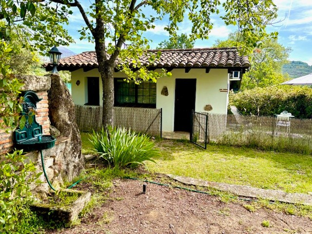 Traditional stone cottage with pool in Villanueva de la Vera. 6 guests, 3 bedrooms, 2 bathrooms. Lovely stone cottage set in a private finca of our Pure Spanish Horse stud of 16 hectares, with stunning views of the Gredos mountains. A comfortable open plan sitting/dining room, fully equipped kitchen, 3 double bedrooms and 2 bathrooms. A pretty rose and herb garden with an salt water alberca for swimming, shady sitting areas looking out to the valley below. Horseriding can be arranged locally.