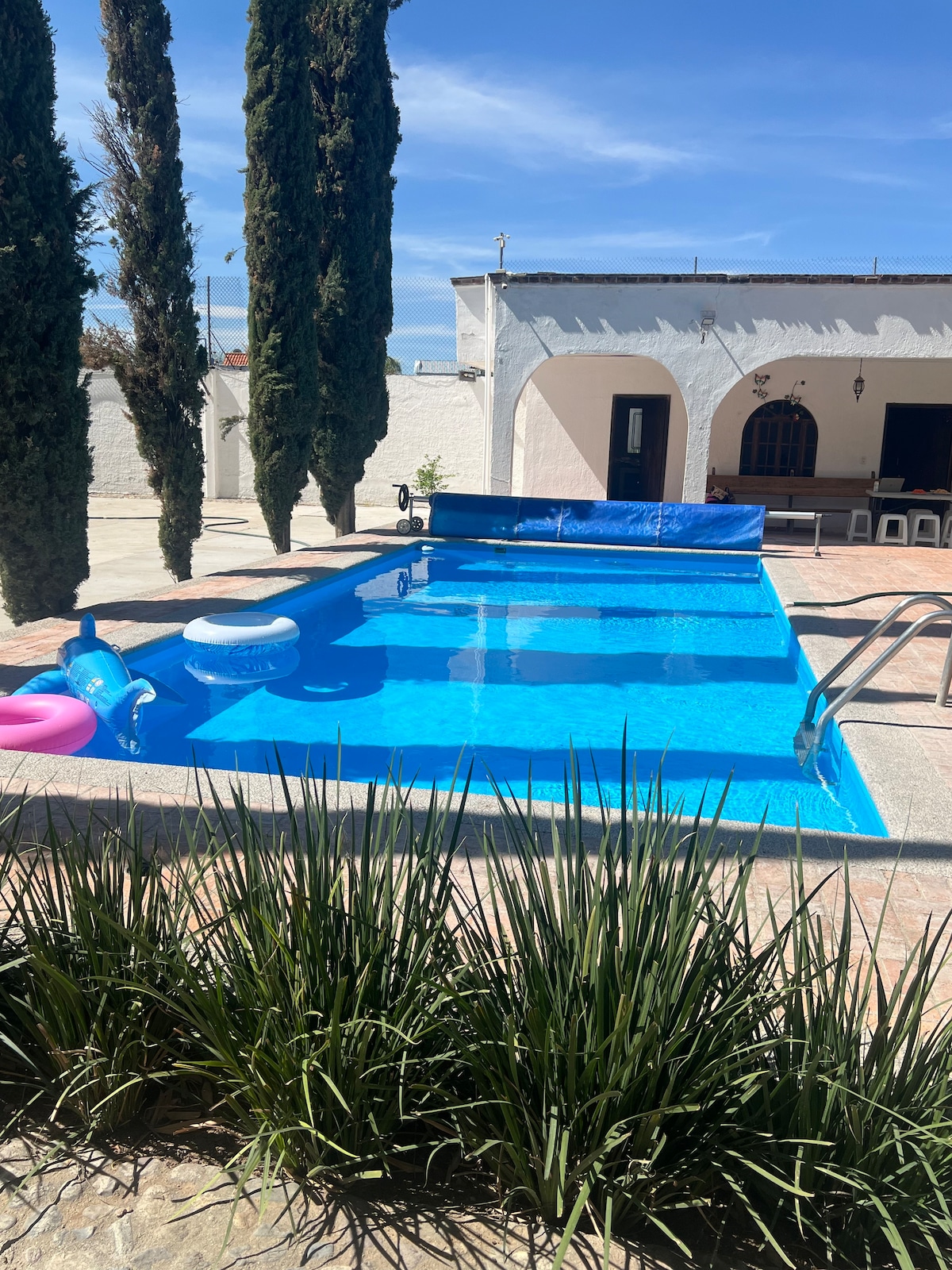 Quinta Chaparrita, Casa con Alberca CLIMATIZADA PRIVADA. Disfruta de la naturaleza en entorno Tranquilo, seguro y Fabulosa Ubicación! 2 Amplias Recámaras+Mezanin. Estacionamiento 6 coches o mas, Cocina +Sala Estar+WIFI. Amplios Exteriores,1 Baño completo interior+2 medios baños exteriores. Alberca con calentador solar perfecta en Primavera y Verano! Otoño e invierno el agua de la alberca es fría por intemperie. Destinos a 20 min como Cristo Rey, GuanajuatoCap, Momias, Outlets del zapato