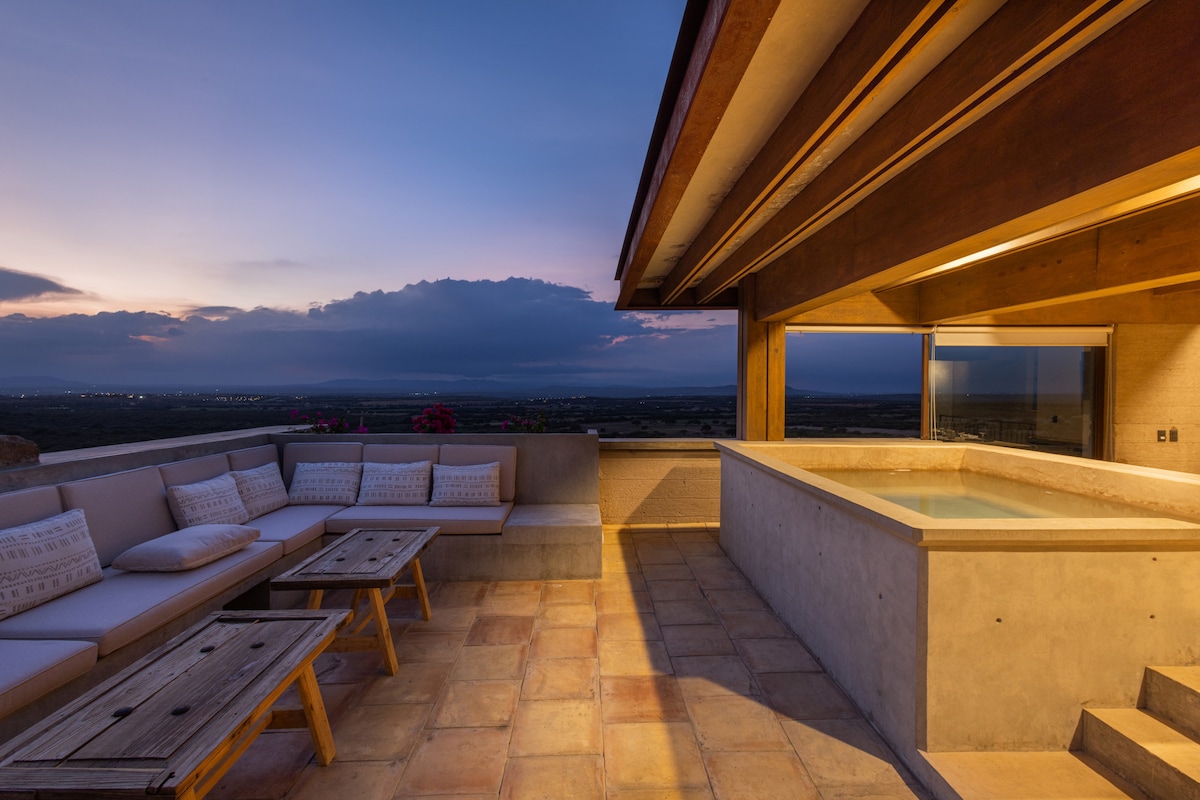Casa Sagrada es un refugio moderno a solo 20 min de San Miguel de Allende. Con diseño contemporáneo, vistas espectaculares y rodeada de naturaleza, ofrece una experiencia única de descanso, arquitectura y conexión con el entorno. Espacios amplios, terraza con jacuzzi, cocina exterior y áreas comunes pensadas para compartir o contemplar. Ideal para desconectar, convivir y disfrutar la calma de las montañas sin renunciar al confort y estilo.