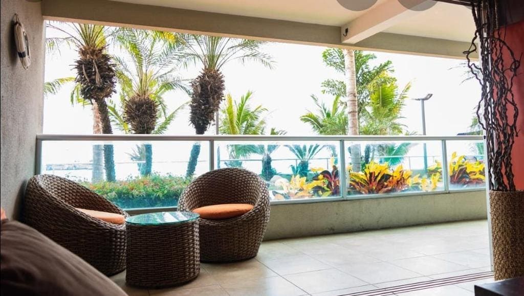 Apartamento ubicado en el Hotel Colon de Salinas. - Cuarto con Smart TV de 75 pulgadas y Netflix - 2 baños con ducha - Balcón con vista directa al mar - Sala - Cocina - Café y cafetera - Parqueo privado - Seguridad 24 horas - 3 piscinas - Justo al comienzo de El Malecón - Servicio de hotel (Restaurante, spa, gimnasio, room service). Estos servicios son independientes del apartamento. *Solo se permiten 2 huéspedes por noche* *Por favor tener cuidado con la hamaca*