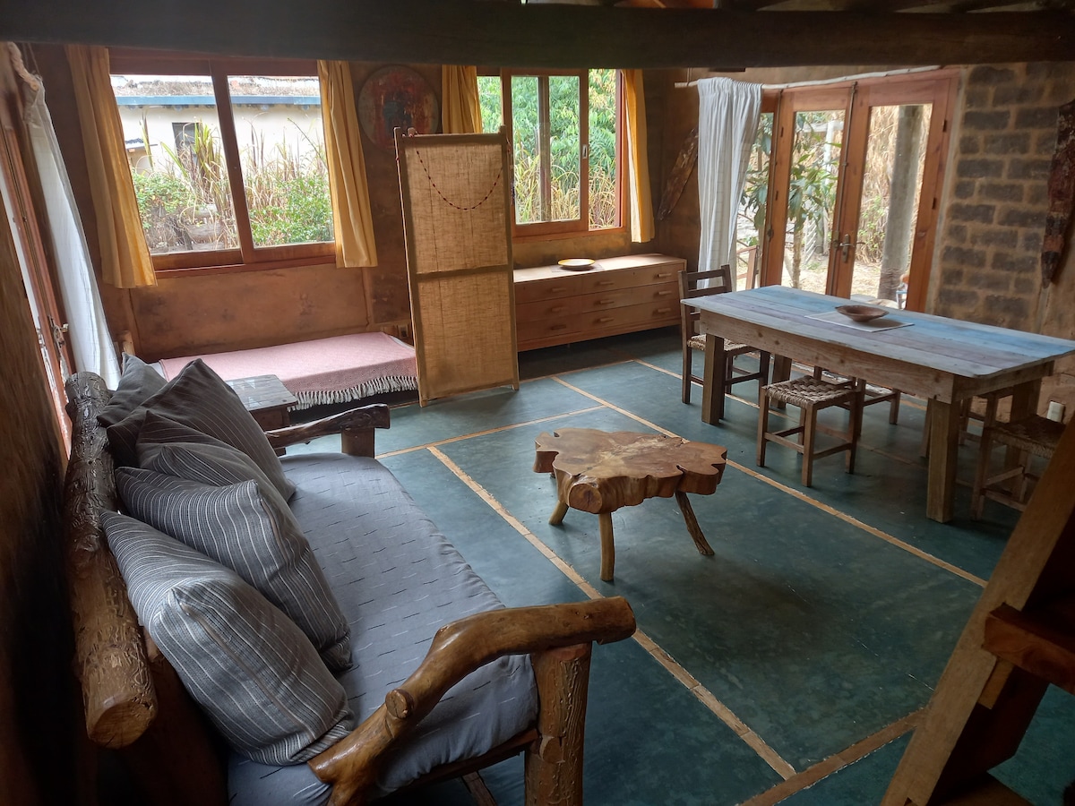 Casa viva inmersa en monte nativo, a 4 cuadras del océano y 5 minutos de la Paloma y la Pedrera. Cuenta con una habitación privada con una cama doble y un altillo con dos camas individuales. La cocina y el baño están bien equipados y el living es amplio y luminoso. También encontrarás una estufa de leña, excelente conexión WIFI y una TV. El patio es privado y está totalmente cercado. La entrada de la calle es compartida por pocos metros con otra casa, por lo que es segura, tranquila e íntima.