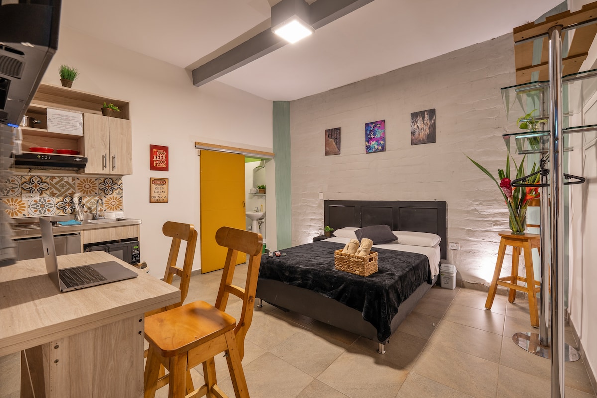 🛎️ ¡Paga 0% de tarifa de servicio en Airbnb! 🛎️ Beneficio exclusivo para huéspedes de nuestros alojamientos Los mejores precios duty free te esperan! Acogedor Studio en el corazón de Medellín, diseñado para NÓMADAS DIGITALES y VIAJEROS apasionados. Es una experiencia de hospedaje única, instalaciones prácticas y diseños exclusivos para aquellos que trabajan de forma remota y requieren de un espacio para trabajar y relajarse.