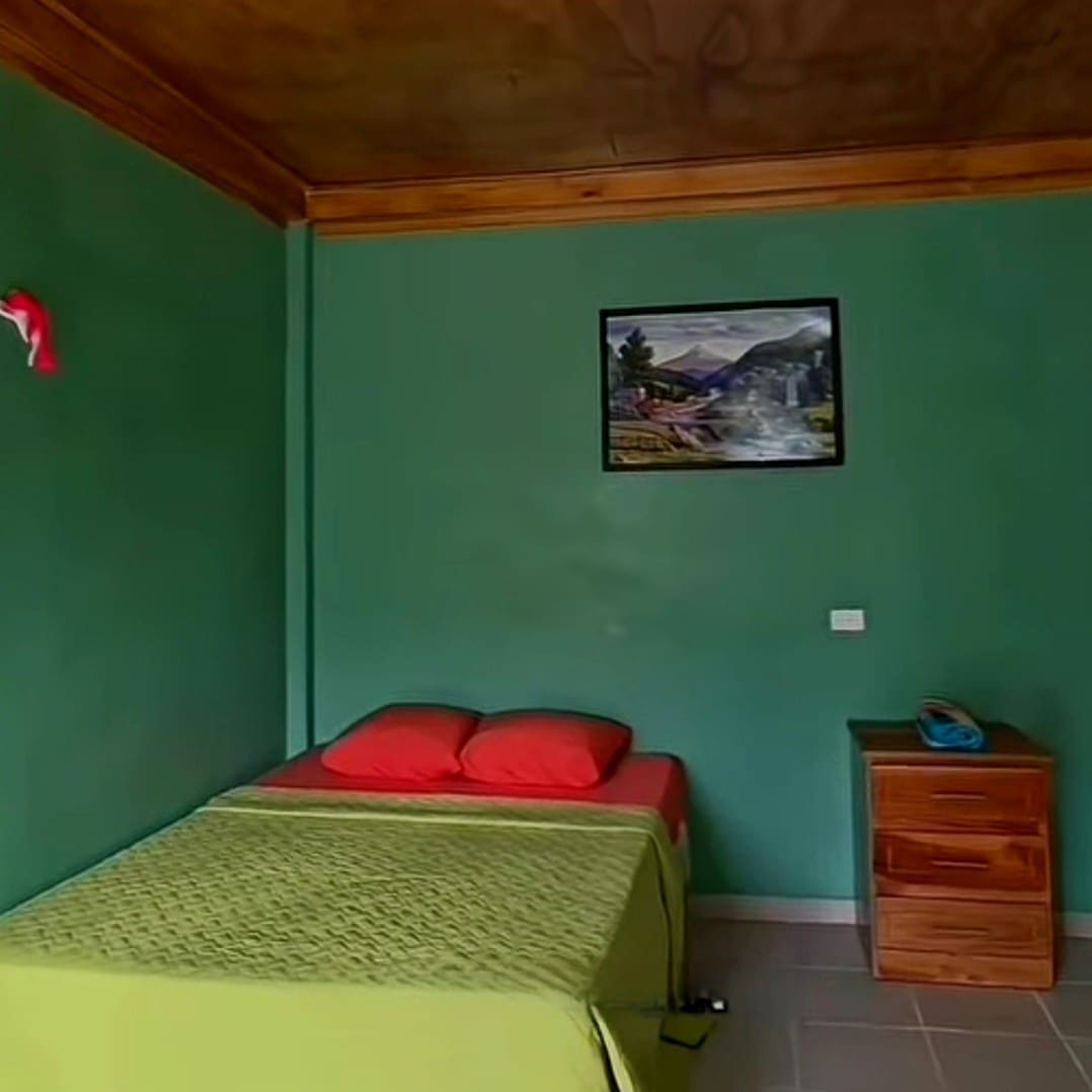 Comfortable room with a queen bed, fresh linens, and soft lighting for a relaxing ambiance. Shared amenities including a fully equipped kitchen, cozy living area, and a terrace ideal for breakfast, sunset drinks and amazing views to the city . Quiet and secure area, perfect for couples, solo travelers, or remote workers. Local authentic Salvadoran pupusas and coffee. This room in Planes de Renderos combines the peace of nature with the convenience of city life, ideal for recharging and exploring