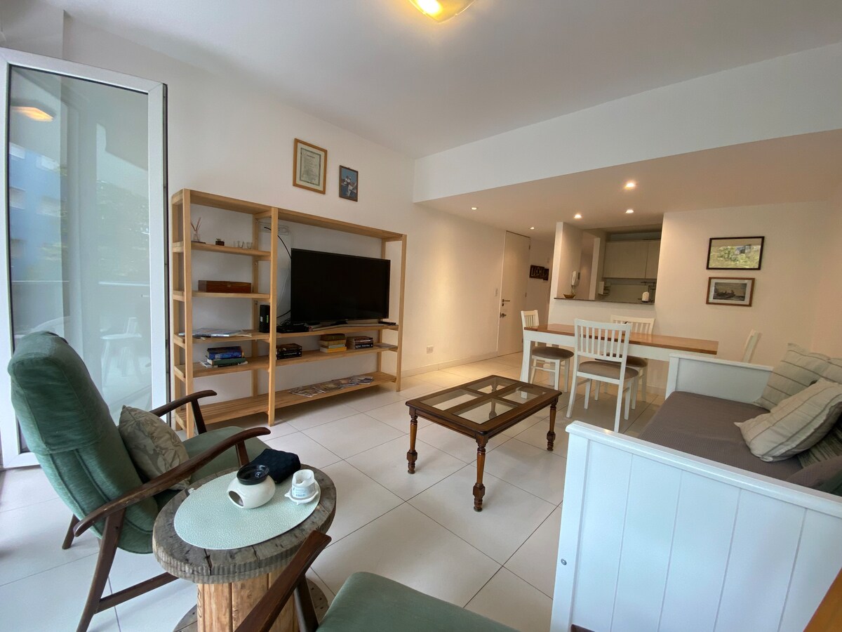Moderno y encantador departamento a pocos metros del mar, ideal para familias o parejas con hijos. Cuenta con un amplio dormitorio y dos baños, ofreciendo comodidad y practicidad durante toda la estadía. Ubicado en una zona tranquila, es perfecto para descansar y relajarse sin alejarse de la playa. Incluye cochera privada, sumando confort y tranquilidad para disfrutar de unas vacaciones sin preocupaciones.