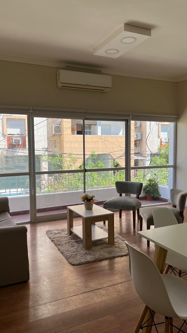 Excelente ubicación en pleno centro a tres cuadras de la plaza principal con estación de servicio al frente y comercios de todo tipo en las cercanias. El ambiente es totalmente seguro con camaras de seguridad y atención de portero. Departamento ambientado y amoblado a nuevo, con todo lo que se necesita para una estadía ideal, comoda y placentera. Cuenta con dos Televisores de 40” y dos aires acondicionado split en la sala de estar y en el dormitorio.