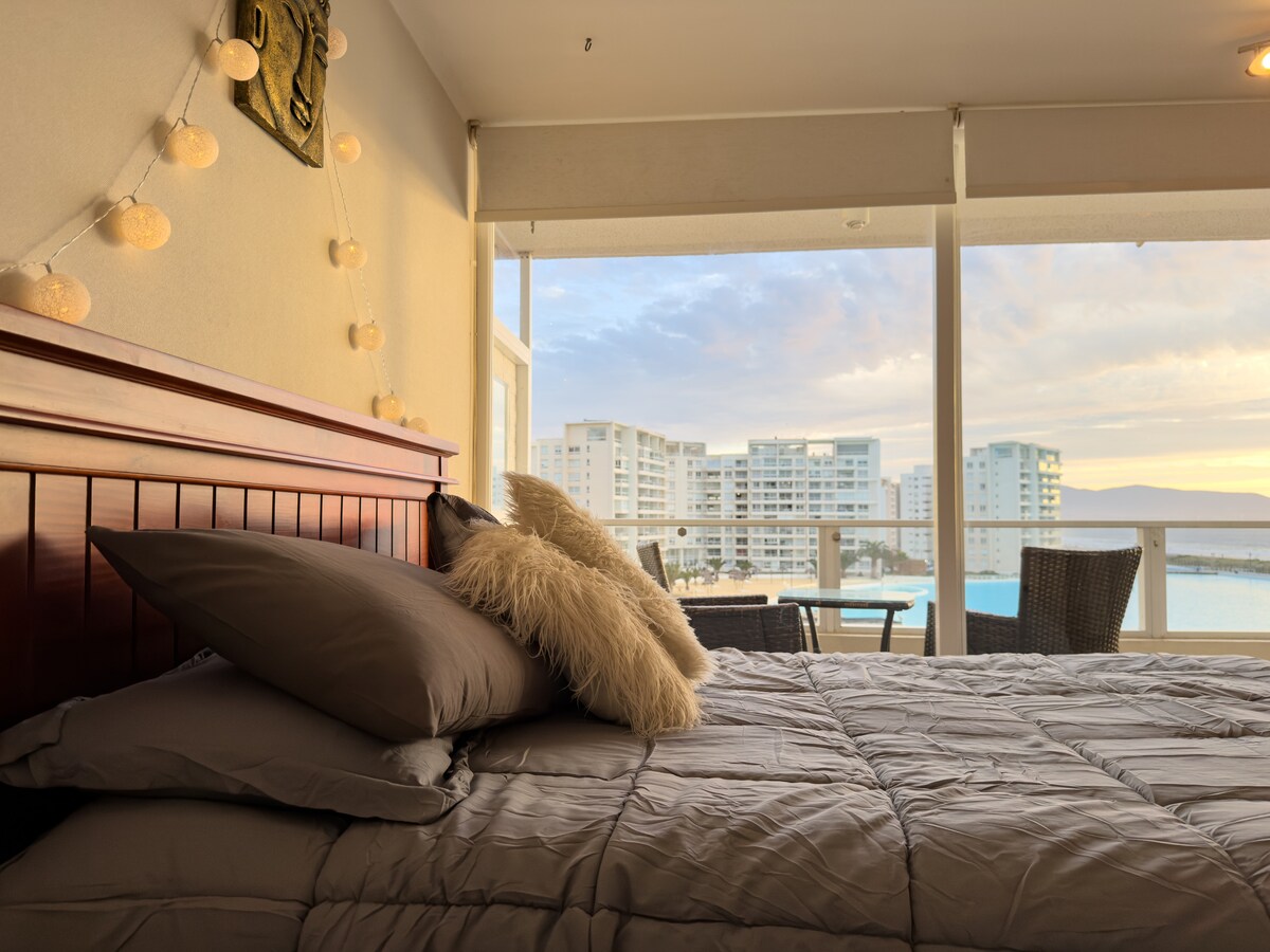 Los pasajeros han valorado la vista al mar del piso 24, la cercanía al Casino Enjoy, a las playas, y al Pueblito de Peñuelas. ( restaurantes, pubs, discotecas, juegos para niños). Escribe cualquier duda, la idea que te sientas en tu casa. Estacionamiento techado al interior del condominio. Incluye sábanas, Jabón, toallas, shampoo, y un papel de baño nuevo por estadía. Check in 16:00 Check out 12:00 (No es posible ingresar antes o salir después de los horarios check in o check ou)