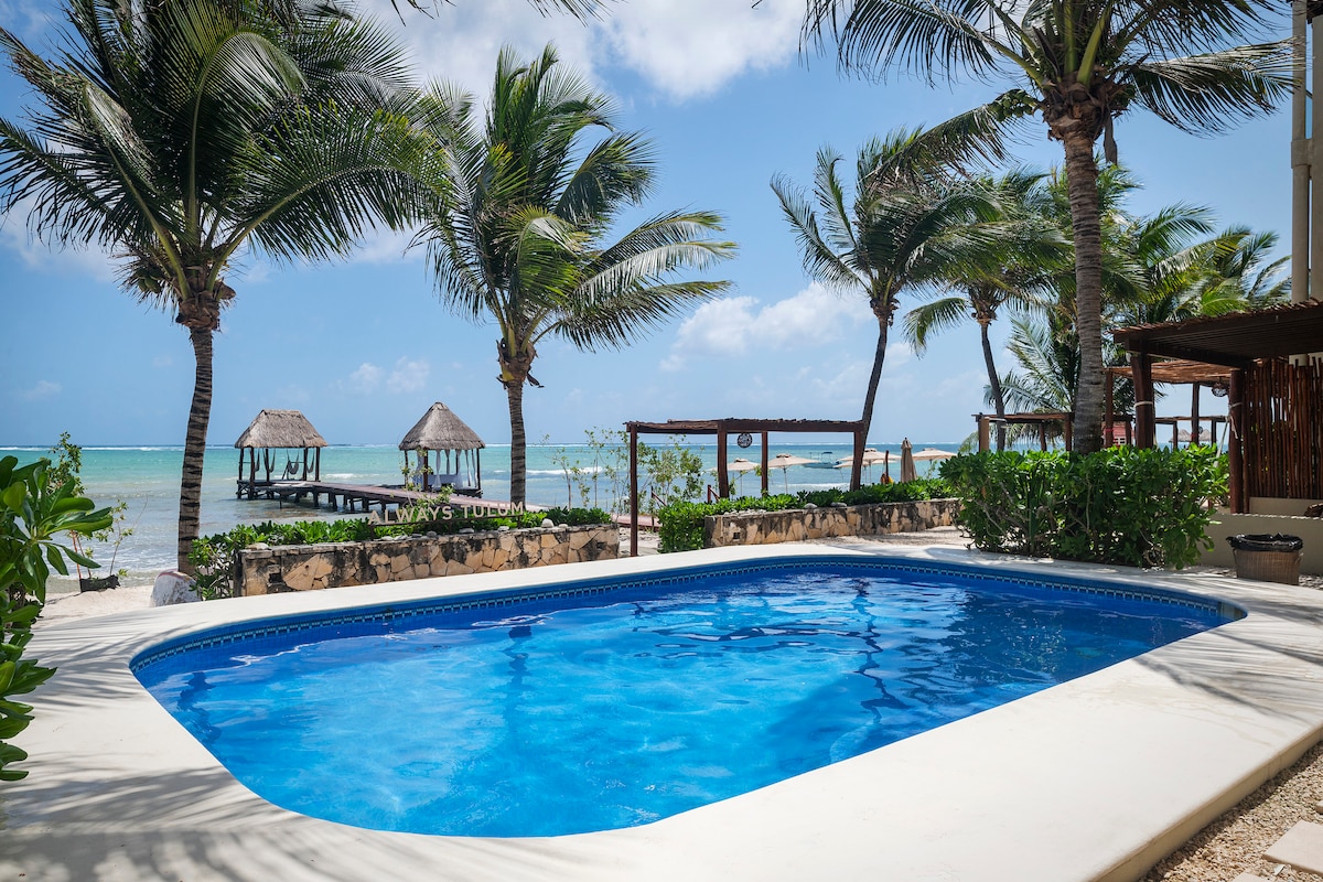 Welcome to paradise! Wake up to the sound of the waves and stunning ocean views from your private beachfront room Casa Altamar,a boutique hotel in the beautiful Bay of Tankah. Relax in a cozy space. Daily breakfast included, served at our oceanfront restaurant. Just steps from Cenote Manatí, ideal for snorkeling, diving, or peaceful nature walks. Disconnect and recharge in a serene, exclusive setting perfect for those seeking comfort, beauty, and tranquility by the sea.