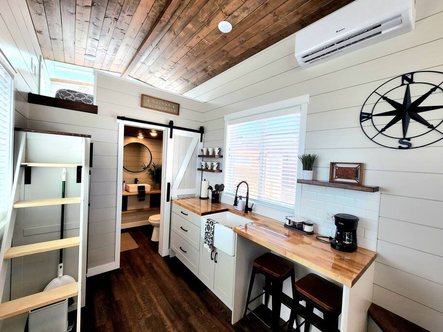 Dentro de cada vivienda, encontrarás un gran equilibrio entre diseños modernos, toques clásicos y características tecnológicas. Esta unidad puede alojar hasta 3 huéspedes con una cama tamaño king y un sofá cama extraíble. 400 pies cuadrados de concepto abierto con techos abovedados, amplias ventanas, puertas de vidrio de 3 paneles, acabados contemporáneos y una sensación brillante y cálida en todas partes. Aire acondicionado mini-split con aire acondicionado silencioso y calefacción.