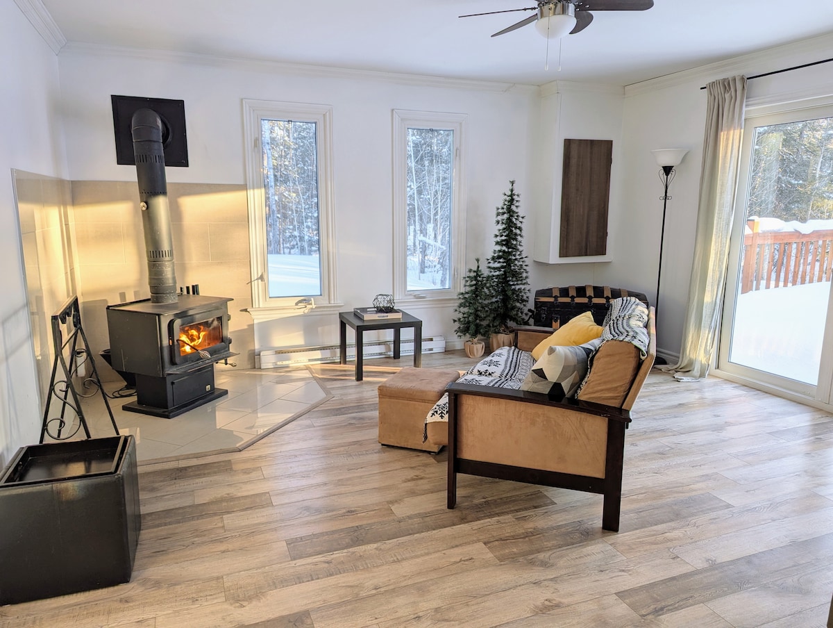 Situado a orillas del lago Northfield en el valle del Gatineau, el chalet de l'Érablière J.B. Caron es un remanso de paz que le encantará. Tranquilo y arbolado, se encuentra a 90 minutos de Gatineau/Ottawa. Construcción de 2018 con aspecto de casa de campo rústica, es perfecta para relajarse y desconectar de la vida cotidiana. Ideal para los amantes del aire libre (kayak, natación, senderismo, raquetas de nieve, esquí de fondo, spa) y a solo 5 minutos del muelle público del lago 31 Milles (Gracefield).