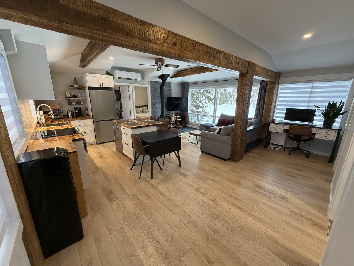 Escápate a un nuevo y lujoso chalet frente al río L'Assomption. Esta casa de 3,200 pies cuadrados ofrece impresionantes vistas a la montaña, un jacuzzi para 8 personas y sala de juegos. Con capacidad para 9 huéspedes, es el refugio íntimo perfecto a solo 1 hora de Montreal y a minutos de esquiar. Disfruta de una calidad superior, detalles artesanales y acceso directo al río para una estancia inolvidable.