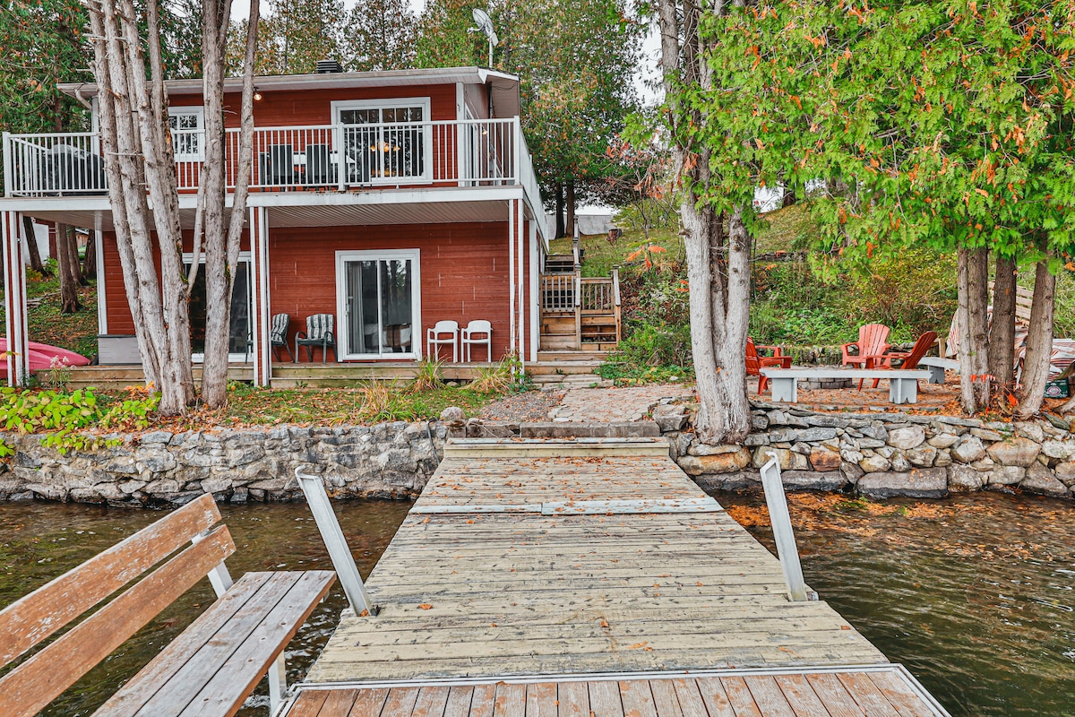 Acogedora casa de campo de 750 pies cuadrados con 2 dormitorios (con un tercer loft de concepto abierto) situada directamente en un lago con acceso gratuito a un barco de pedales y una canoa, con spa para 6 personas y vistas increíbles. La casa es ideal para 4 personas, pero tiene capacidad para hasta 7. El pequeño baño tiene una ducha a ras de suelo, suelo de baldosas con calefacción y una lámpara de calor para mantenerte caliente. Internet wifi de fibra óptica (125 mbps) también incluido para tu entretenimiento o trabajo fuera de casa. También hay un televisor inteligente, DVD, juegos de mesa y mucho más. CITQ #302807