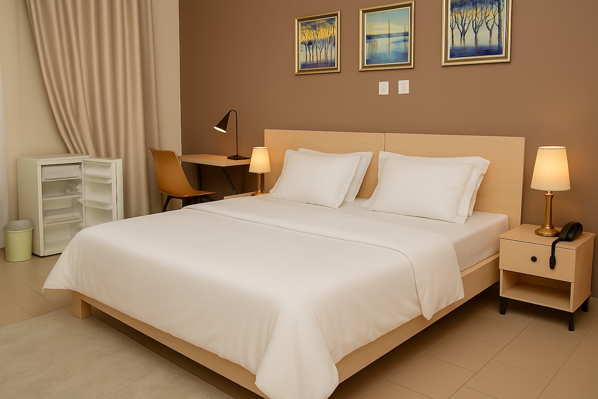 Disfrute de un alojamiento cálido situado en uno de los barrios más elegantes de Yamoussoukro, en el barrio millonario con muy fácil acceso. Uno de los puntos fuertes del alojamiento es que tiene un estacionamiento interno vigilado h24, conexión a internet y una suscripción de canal plus. Lejos del ruido, los atascos de tráfico, Yamoussoukro está a 2 horas aproximadamente de Abiyán