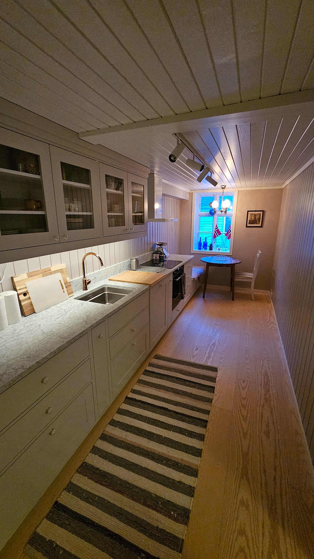 La "Chimenea" fue construida en 2004 con todas las cualidades modernas. Hay cables de calefacción en el piso, terraza privada, un gran horno trasero de leña y una zona de crecimiento justo afuera. La casa incluye un dormitorio y un loft. Justo fuera de la puerta encontrarás populares rutas de senderismo y ciclismo. A 6 minutos en coche del centro de Sogndal, a 4 minutos se encuentra el centro de Kaupanger con tienda de comestibles y el centro de ViteMeir, ¡agradable para grandes y pequeños! A 2 minutos encontrarás piscina, parque infantil y gimnasio.